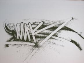 Teurk, artiste dipolaire - Espace Sol MondoTeurk produit lui-même sa limaille de fer qu’il saupoudre sur des surfaces blanches aimantées. Il trace des calligraphies en négatif, par retrait de matière, à la main mais aussi avec des morceaux d’éponge ou par le souffle d’un compresseur. Il efface, rajoute de la limaille, recommence obstinément ses écritures, les superpose. Les œuvres de Teurk connaissent une perpétuelle évolution qu’il intègre dans sa démarche en gardant une trace vidéo de ses manipulations. C’est très naturellement qu’il arrive à adapter son processus de création au domaine du cinéma d’animation, comme pour le projet du long métrage Adama*. Les images s’animent en effet avec l’accroissement et la réduction de la matière ferreuse, sous l’effet d’aimants.