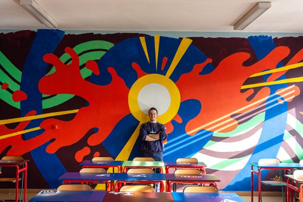Mon dernier projet c’est le projet pour lequel nous avons repeint une salle de classe celle d’une classe de STMG. On a réalisé ce projet ensemble avec les élèves, ils ont pu choisir au maximum ce qu’ils voulaient notamment au niveau des couleurs, ce qu’ils allaient écrire, leurs logos. Pour la plus part ce sont des élèves en difficultés, l’objectif était aussi de faire en sorte qu’ils puissent se sentir à l’aise dans leur salle de classe, qu’ils se l’approprient comme si ils étaient chez eux. Cela a duré 2 jours et c’était des moments riches en échanges. Ils viennent tous de milieux et d’horizons différents, et on a pu discuter de plein de choses, de leurs visions de la vie. J’ai eu beaucoup de retours positifs. J’aime bien le côté “social” avec des enfants et des jeunes ados, j’aime également les projets participatifs dans les lycées, les centres aérés…