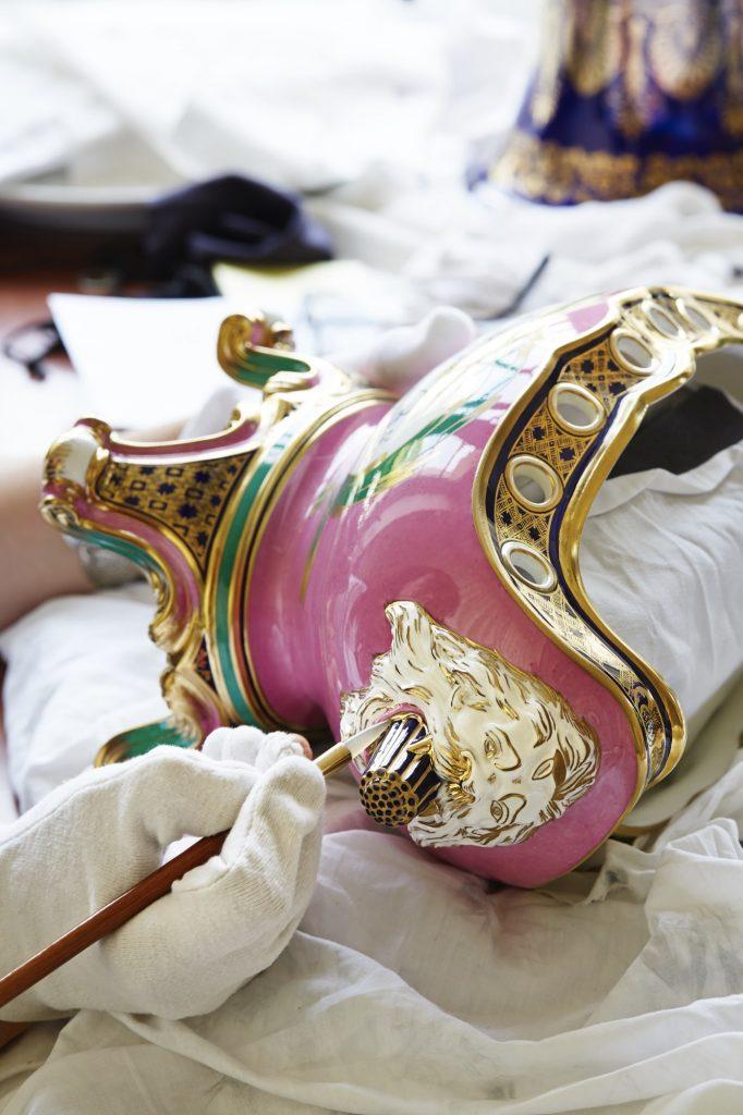 Tout le long de l’exposition, les visiteurs ont l’occasion d’en apprendre davantage sur certaines couleurs emblématiques de la Manufacture ainsi que sur leurs processus de fabrication délicats, témoignant du caractère imprédictible de la couleur. Sèvres a su se distinguer dans l’Europe entière par l’indéniable qualité technique de ses couleurs comme le jaune Jonquille ou encore le rose Pompadour. Parmi les couleurs qui ont participé à son prestige, on peut relever la création du bleu Céleste (1753), un sublime turquoise commandé entre autres par le roi Louis XV et Catherine II de Russie. Dans cette continuité, l’institution met au point des couleurs à la demande des artistes comme l’orange Sottsass ou le vert Hyber.