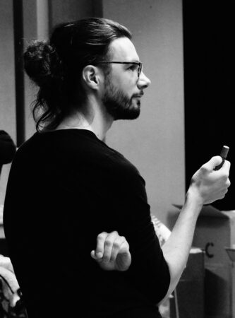 J’ai commencé par une formation de danseur contemporain au Conservatoire Supérieur de Paris. Au cours de mes études, je me suis spécialisé dans le rapport corps et voix. Puis je me suis fait engager comme danseur, chanteur d’opéra, chorégraphe ou encore metteur en scène. Depuis 15 ans, je change de casquette et je navigue d’un univers à un autre ! J’ai également fait une incursion dans la chanson, en tant qu’auteur-compositeur. En 2019, le projet Le Leurre a été créé par Vincent et moi-même. On programme des événements et on propose des stages sur les métiers de la scène. On a pu produire notre toute première création, Vercingétorix, qui était à l’origine une commande faite par l’Atelier Lyrique de Tourcoing, pour les Belles Sorties de la métropole lilloise. C’est une co-réalisation dont nous sommes très fiers. La création connaît à ce jour une vingtaine de dates et s’est développée dans tout le département du Nord, ainsi qu’à Granville bien entendu.