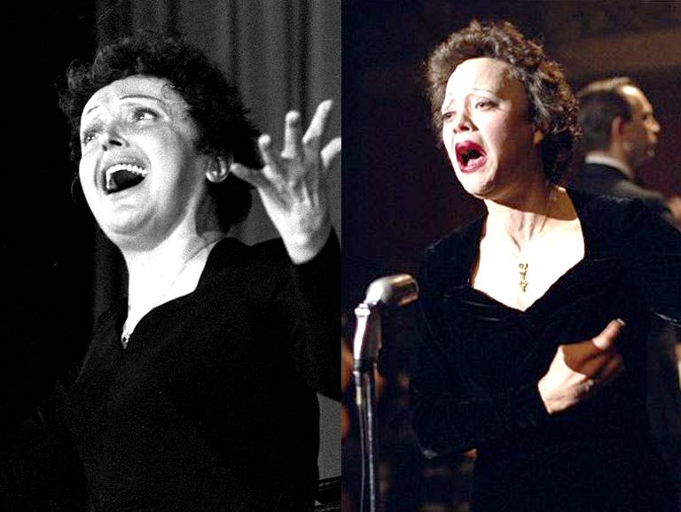 À gauche Edith Piaf / à droite Marion Cotillard dans La Môme