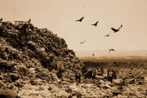 À son arrivée, apparaît devant Vik Muniz un paysage chaotique. S’élèvent face à lui des montagnes de détritus survolées par des colonies de volatiles noirs, rodant, pillant et piaillant sourdement. On imagine aisément l’odeur putride qu’il en émane. C’est bien l’un des derniers lieux où quiconque souhaiterait se trouver. Mais après avoir surmonté une vague de dégoût, le photographe se fascine très vite pour l’organisation qui agite cette cité turpide. D’immenses bennes déversent des quantités d’ordures sur des hommes et des femmes qui semblent assez bien connaître toutes les aspérités de ces collines pour ne pas se trouver ensevelis sous ces flots immondes. Ces gens sont les « catadores ». Ils endurent jours et nuits l’invraisemblable labeur de ramasser les matériaux recyclables caracolant péniblement sur ces monticules. C’est à eux que souhaite s’intéresser Vik Munik.
