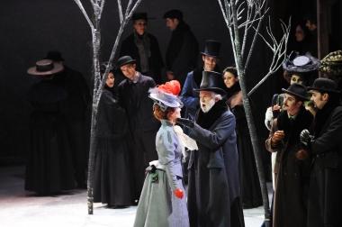 Les magnifiques décors et les costumes d’Éric Ruf nous transportent dans une petite ville de province au XIXème siècle, sobres et en demi-teintes, sublimés par le jeu subtil des lumières. C’est là que le stratagème se met en place.
