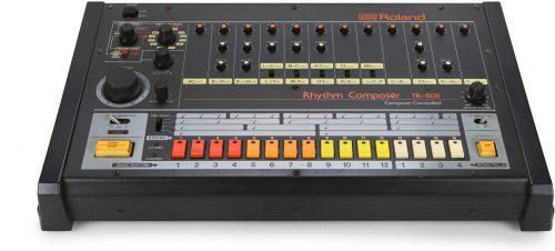 L’une des boîtes à rythmes les plus célèbres de la firme Roland lancée en 1980. Ses sons sont nés d’un incident et n’ont pas grandement convaincus ses concepteurs, terminant la production en 1983. Ce qui sauva cet instrument, c’est sa popularité dans le marché de l’occasion, en plein coeur de la culture underground qu’est la house ou le hip-hop. Sa sonorité particulière et inimitable séduit, son kick profond et sa snare (caisse-claire) perçante. L’apport rythmique n’est pas dans l’imitation d’une réelle batterie, mais sur quelque chose bien à part. Elle revient en force de nos jours, grâce à la trap music.