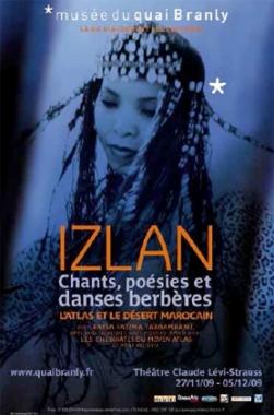 Ce spectacle intitulé Izlan, terme berbère désignant l’art de la versification, met en scène quatre formations d’artistes berbères, hommes et femmes garants de la culture amazighe. Tous se font l’écho d’une poésie transmise de génération en génération et sans cesse réinventée. Comme le chante Rays Said Outajjajt : Sachez que la poésie est une potion magique ; Tel un savon, elle purifie des chagrins nos cœurs. Leur poésie est une expression collective qui aborde sans censure et avec humanité l’amour, la cause de la femme, l’identité berbère, les difficultés du quotidien, le monde contemporain. Elle est une réflexion moderne sur la vie, que des voix, des musiciens et des danseuses hors du commun véhiculent à travers les âges. C’est véritablement un art populaire au sens noble du terme, un art qui permet à un peuple de s’exprimer avec finesse et intelligence. Certes les noms de Mint Aichata, des Cheikhates du Moyen-Atlas, de Rays Said Outajjajt, Rays Moulay Hmad Ihihi ou de la grande Rayssa Fatima Tabaamrant sont inconnus pour beaucoup en France, mais ils sont pourtant des poètes et poétesses dont les textes ont la capacité d’émerveiller tous les publics.