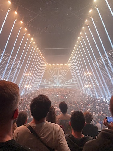 Pour couronner le tout, la scénographie hypnotique et les jeux de lumière savamment pensés par Vincent Lerisson, nous ont tantôt invités à célébrer une grand messe au cœur d’une cathédrale de lumière, tantôt poussés à embarquer dans un vaisseau futuriste. Nous avons ainsi oscillé d’un univers pop-religieux à un univers de SF electro durant près de 2 heures. Parce qu’à défaut de s’adresser avec des mots à leurs fans, Justice nous a embarqués dans un voyage absolument grandiose. Le duo a littéralement retourné l’Arena de Bercy dont le public est ressorti sonné par la rythmique percussive, les envolées lyriques, et l’esthétique d’une élégance absolument irréprochable. Un pur joyau artistique !
