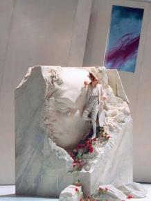 C’est à partir de ce constat que Willy Decker a conçu son intriguante mise en scène créée en 1997 et reprise en ce début d’année à l’Opéra Garnier. Au lever de rideau, un monolithe en marbre trône au centre de la scène. Le mal n’est pas encore fait que déjà le souverain Titus refuse la couronne que lui tend son capitaine Publio. Pour Willy Decker, il s’agit avant tout de l’échec annoncé d’un roi ne pouvant réussir à faire le bien face à la cruauté du monde qui l’entoure. Morcelé de parts et d’autres au fur et à mesure de l’action, ce monolithe cachera en fait un buste géant de Titus qu’il n’arrivera pas lui-même à admirer. Ce n’est d’ailleurs pas pour rien si lors de la scène finale, ce monument fera face à un Colisée encore en feu, tournant le dos au public. Peut-être y manque-t-il juste une couronne… Celle-ci même qui passe entre les mains des trois prétendantes de Titus mais qui ne convient à personne. À l’heure où l’humain est en quête (ou conquête) permanente des pleins pouvoirs, Mozart est toujours présent pour nous rappeler à l’ordre. Il nous apprend surtout à rester humbles par le biais de sa musique quasi sacrée.