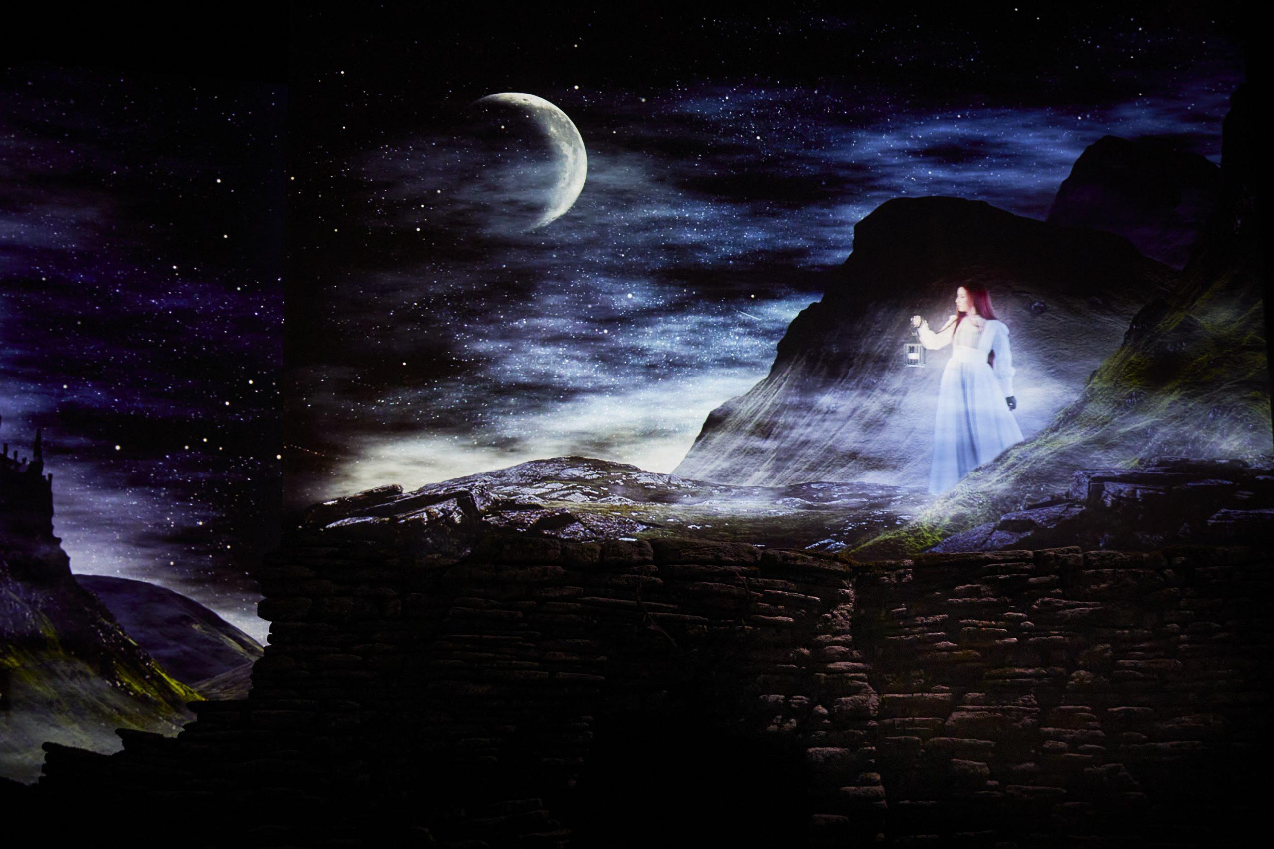 Pauline Bureau, très inspirée dans ses mises en scène au théâtre, a suivi de près l’imagerie gothique écossaise avec kilts et tartan, ambiance brumeuse à la Harry Potter et vidéos de la Dame blanche qui apparaît en fantôme vaporeux et flottant sur les remparts comme la Reine des Neiges. On peut être surpris par cette imagerie à la Walt Disney qui colore en orange les barbes des campagnards et de rose les robes des femmes aux couettes bien blondes, tant elle semble hésiter entre un réalisme premier degré et l’ironie d’une fable un peu trop scolaire. Certaines scènes tirent en longueur et d’autres demeurent trop statiques, ce qui donne un aspect carte postale à une œuvre qui aurait besoin de légèreté et de mystère. Le souffle arrive plus tard, et surtout grâce aux interprètes qui donnent le meilleur d’eux-mêmes.