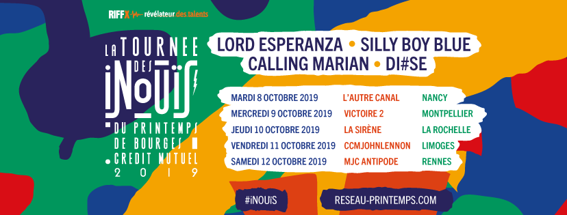Chaque année, parmi plus de 3000 candidats lors de l’appel à candidatures, 33 artistes « iNOUïS » sont retenus. Sélectionnés par un jury de professionnels, dans 28 antennes françaises et francophones, ce tremplin cherche chaque année à révéler des talents. Et le pari est réussi ! Parmi les anciens lauréats on retrouve, entre autres, FAUVE, Christine and The Queens, Radio Elvis, Last Train, Fishbach, Nusky & Vaati, Eddy de Pretto et enfin Lord Esperanza qui accompagnera les lauréats de l’édition 2019 sur cette tournée.
