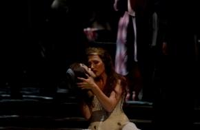 Sa Salomé est belle et bien une enfant gâtée inconsciente et agissant par pure jalousie. Un grain de folie manque pourtant à l’appel devant un décor immobile dont la lumière d’André Diot vient donner un certain (lent) mouvement. Côté chorégraphie, Françoise Gres manque son coup lors de la fameuse danse de Salomé dans laquelle Angela Denoke se démène tant bien que mal avec quelques pas de valse. Celle-ci sera finalement tuée par le page d’Herodias venant confirmer la tendance shakespearienne de cette production classique et sobre laissant avant tout place à la musique de Richard Strauss. On ne s’en plaindra aucunement devant la facilité qu’offre cette œuvre pour provoquer un public généralement des plus bien-pensants.
