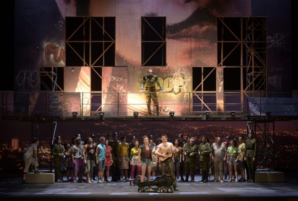 À l’instar de Carmen, racontée par Mérimée et mise en musique par Bizet, La Périchole est un personnage de femme libre et passionnée, férocement indépendante, qui connaît la valeur de l’argent, qu’elle gagne ou pas, et les moyens d’obtenir des faveurs. Inspirée d’un personnage réel, actrice et courtisane, c’est une chanteuse de rue, amoureuse de Piquillo, un joueur de guitare gentil mais un peu simple. Comme souvent, le metteur en scène Laurent Pelly et sa scénographe Chantal Thomas ont décalé le cadre de l’histoire, avec la complicité d’Agathe Mélinand pour les dialogues, la plongeant en plein présent dans la capitale du Pérou, Lima, grouillant d’une population bigarrée aux vêtements de coton simple, shorts et en tee-shirts colorés, au centre d’une place dominée par des immeubles des années 60 avec du linge suspendu aux fenêtres. En short de jean et collants résille, Antoinette Dennefeld déambule à la manière d’une sauvageonne, mi-biche mi-tigresse, voix de velours et sourire carnassier.