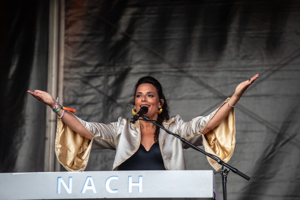 En ce qui nous concerne, Nach, pourtant invitée systématiquement sur scène par ce dernier, est une belle découverte. Cette fois-ci, en solo, au clavier et au chant, entouré de plusieurs machines, elle déploie une énergie incroyable. C’est une véritable femme orchestre. Si l’on retrouve les mêmes envolées vocales que son frère et aussi une forte présence, elle se démarque par ses compositions de qualité qui nous invite à un voyage intime, poétique et puissant. Son nouvel album, Peau neuve, est conçu comme un voyage. Il symbolise une renaissance, une mue. Ses clips sont également très réussis, comme le dernier (réalisé avec Diane Moyssan).