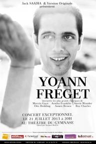 Après sa victoire à The Voice et une tournée magique accompagnée de ses camarades de la deuxième saison, Yoann Fréget a investi le Théâtre du Gymnase, le 21 juillet dernier à Paris, pour un premier concert événement en solo. L’occasion de reprendre sur scène les plus grands succès de Marvin Gaye, Aretha Franklin, Stevie Wonder, Otis Redding, James Brown et Ray Charles.