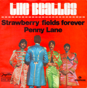 George Martin regretta par la suite de ne pas l’avoir inclus.  Strawberry Fields Forever sort en single le 17 février 1967 avec Penny Lane. La pochette du single montre le groupe au recto et des photos d’enfance des quatre membres au verso .