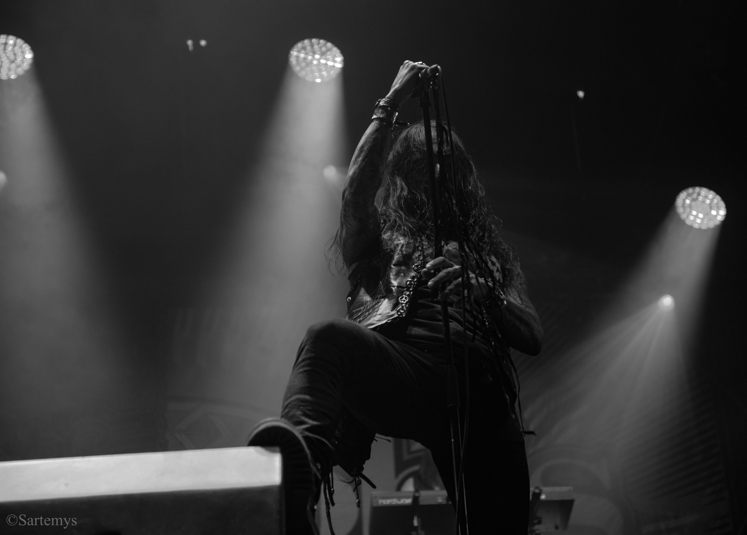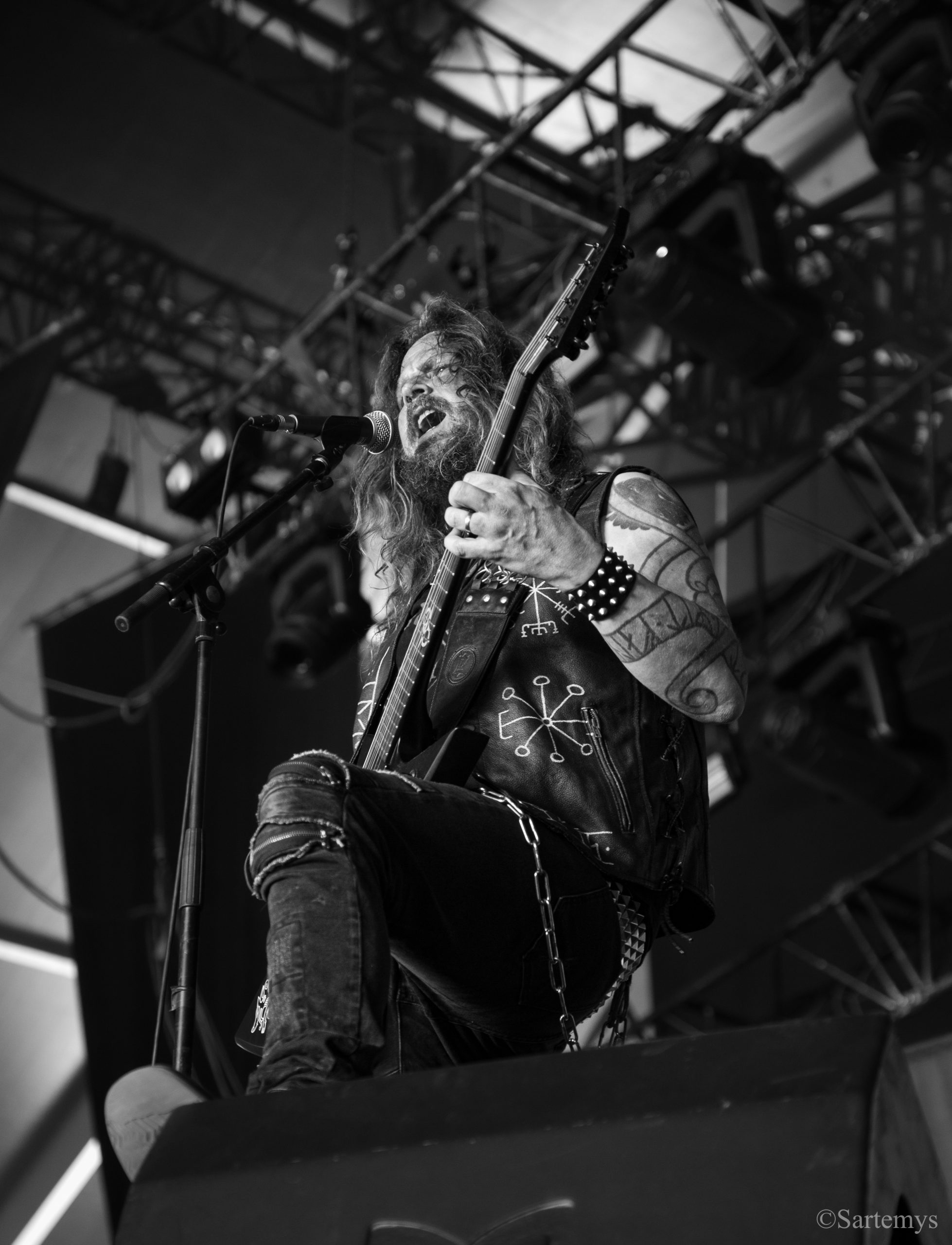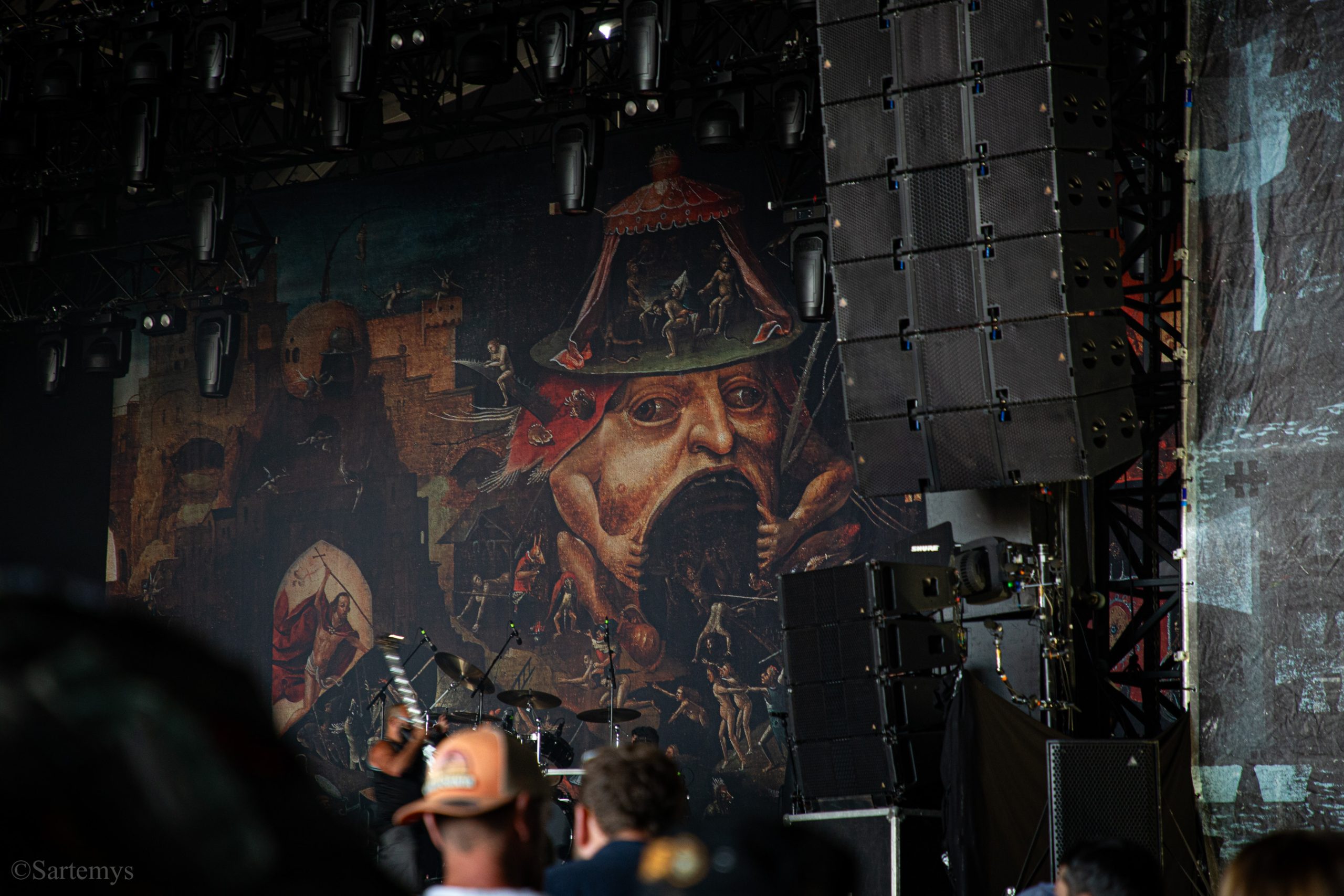 Retour au temple avec un beau Christ aux limbes de Jérôme Bosch (Mandyn ?) nous accueillant en toile de fond – loin d’être contingent pour un groupe ayant d’ores et déjà composé une ritournelle pour l’exposition sur Munch à Oslo en 2022 : Satyricon. Réputés pour leur black metal de source pure, ces norvégiens décadents nous ont alors délivré un concert magistral, profitant de l’énergie ambiante et de l’admiration de tous pour nous enjoindre de rester dans cette liturgie.