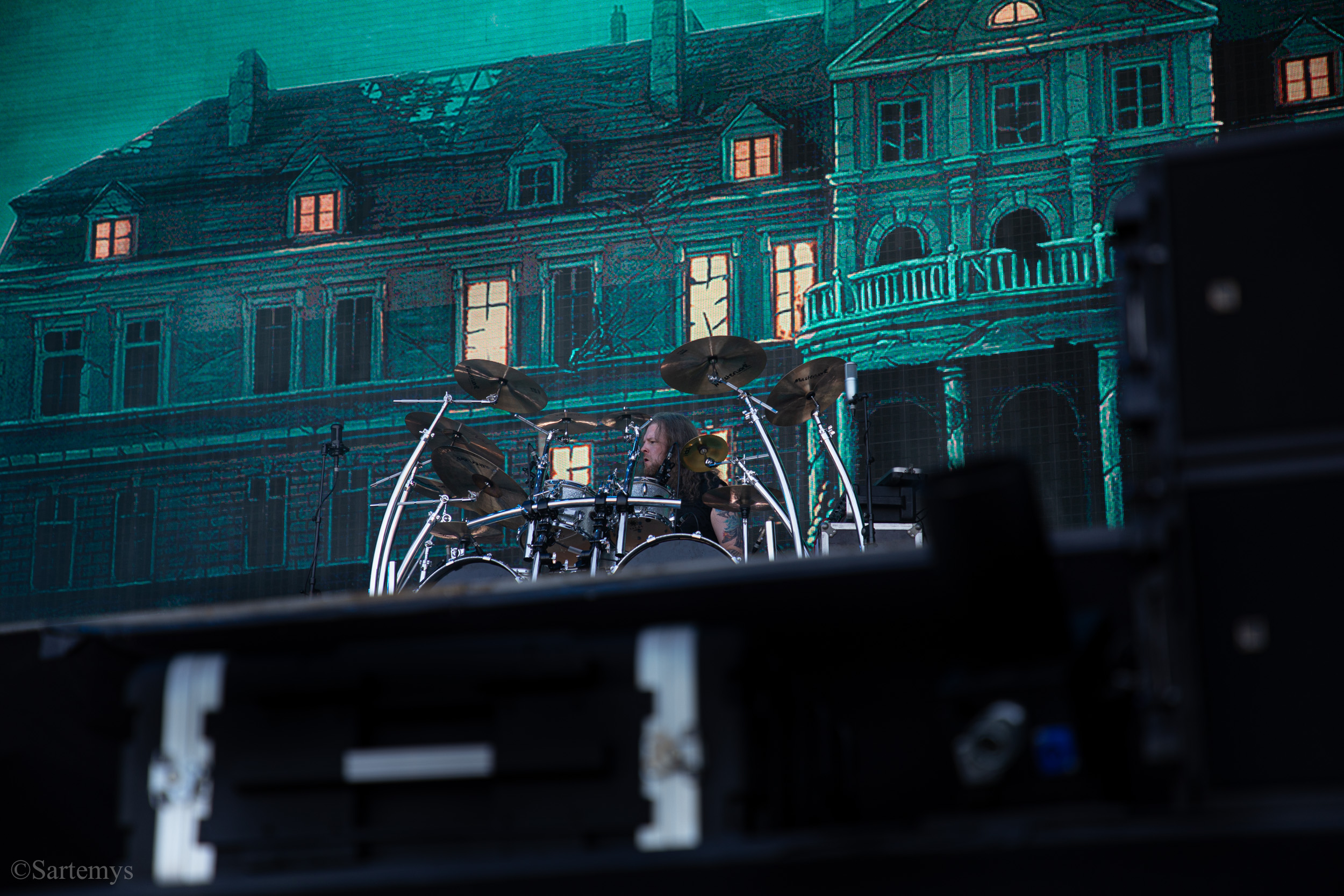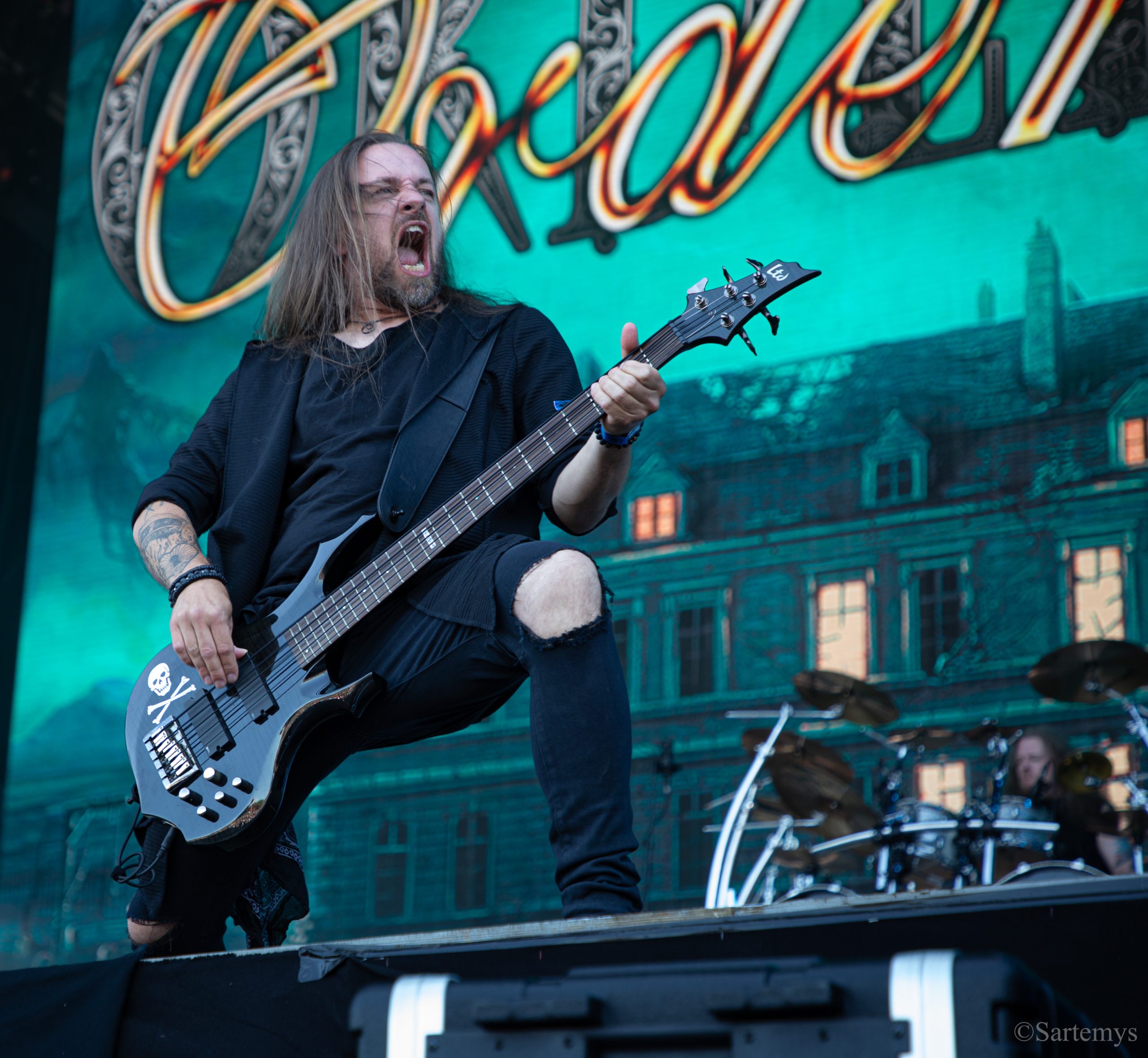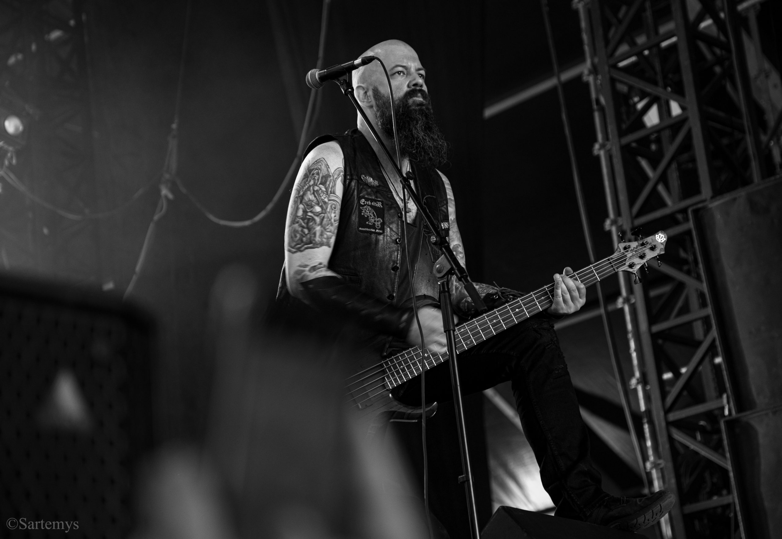 Retour au temple avec un beau Christ aux limbes de Jérôme Bosch (Mandyn ?) nous accueillant en toile de fond – loin d’être contingent pour un groupe ayant d’ores et déjà composé une ritournelle pour l’exposition sur Munch à Oslo en 2022 : Satyricon. Réputés pour leur black metal de source pure, ces norvégiens décadents nous ont alors délivré un concert magistral, profitant de l’énergie ambiante et de l’admiration de tous pour nous enjoindre de rester dans cette liturgie.