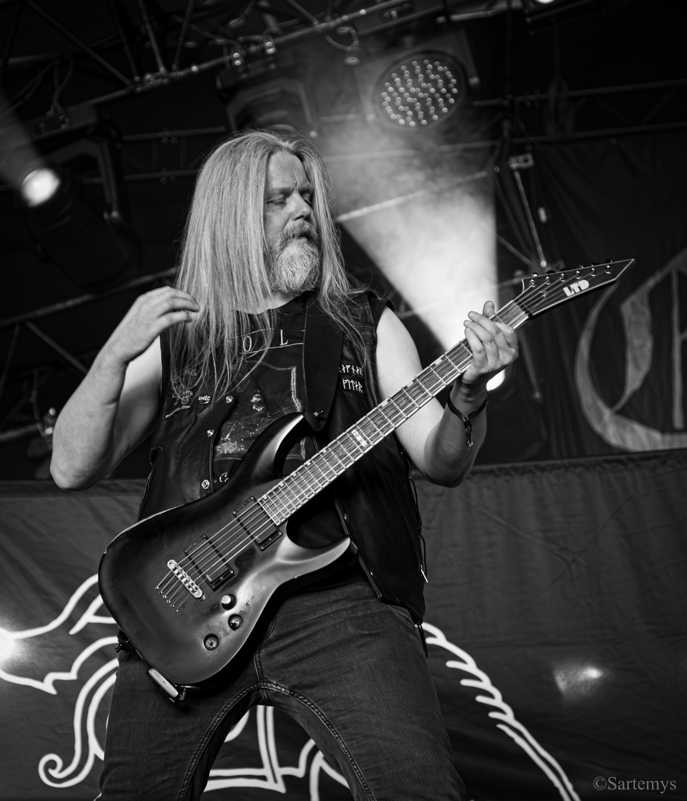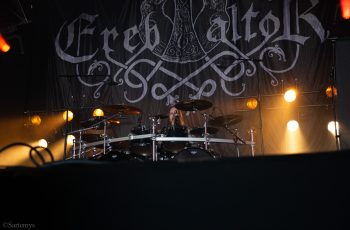 J’affirmais récemment dans une chronique sur leur dernier album, Vargtimman, que celui-ci pouvait faire référence au titre du film d’horreur L’Heure du loup… mais sans penser une seule seconde, à la pleine lune en plein jour ! C’est donc sous l’ombre de la Temple que je vis cette meute aux dents acérées, décharger son black metal aux forts accents doom sur les planches de cette grotte si appréciable. « Âmes d’antan pour cœurs vaillants » écrivais-je… car oui, c’est un chant d’anciens grands guerriers que nous délivra Ereb Altor, enfumant chacun de son flegme pénétrant !