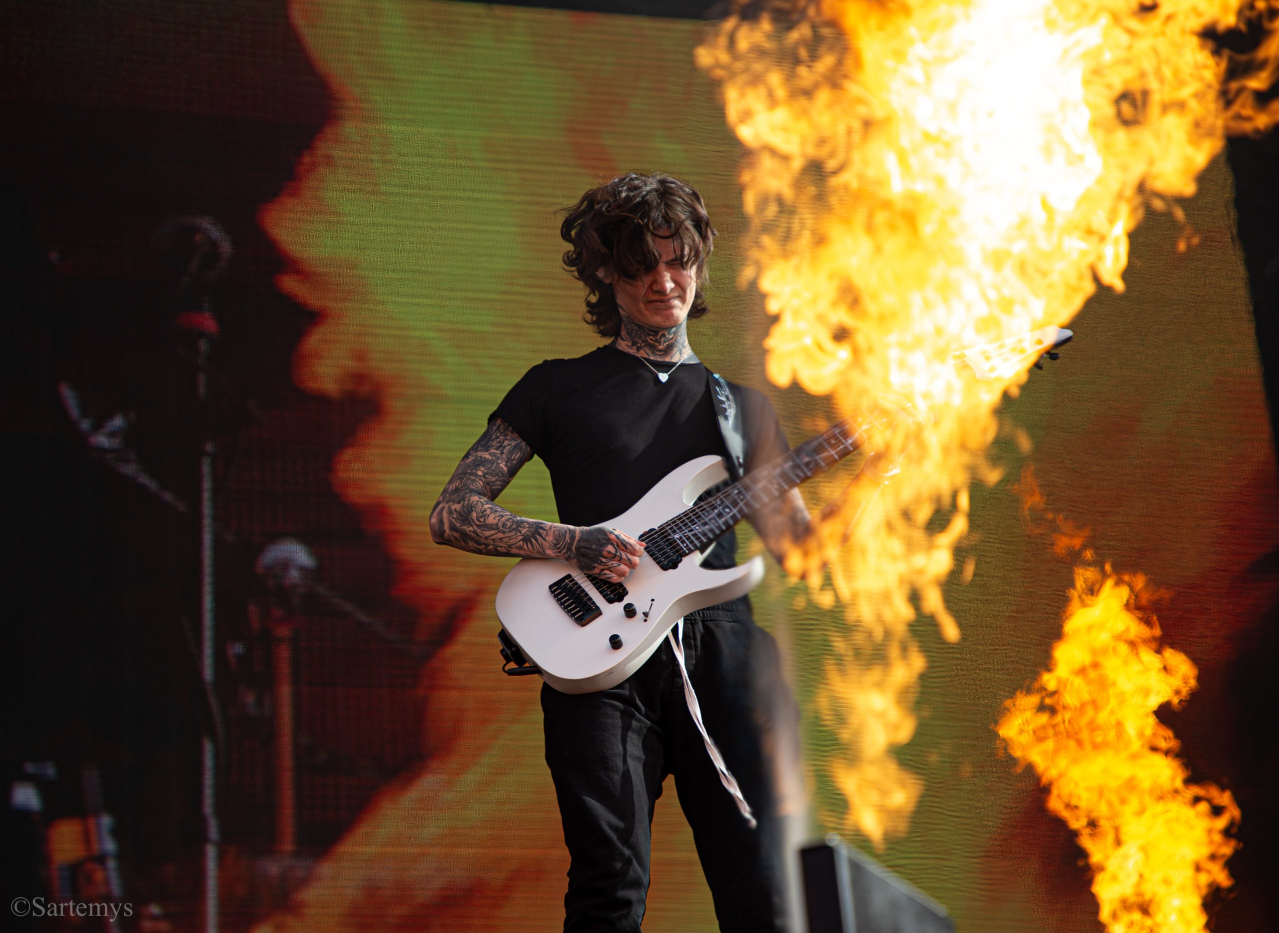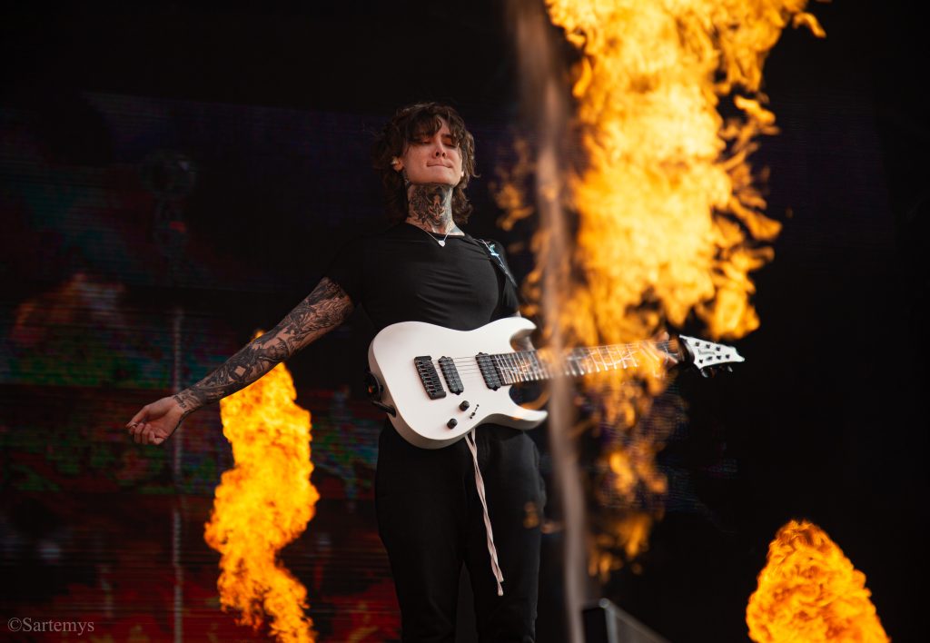 Restons au zénith afin de retrouver un groupe de metalcore britannique que l’on ne présente plus, et s’étant particulièrement imposé à l’édition dite du siècle, en 2022, sur la Warzone, While She Sleeps ! Fortement attendu par la plupart, membres du public comme photographes, WSS pour les intimes, dévoila un show sobre mais maîtrisé, avec lumières et fumées, jouant sur quelques lights malgré un passage en journée. Des titres attendus de leur album phare You Are We ont été joués, assurément, mais également des nouveautés tirées de SELF HELL. Les anglais étaient une nouvelle fois, bien réveillés !