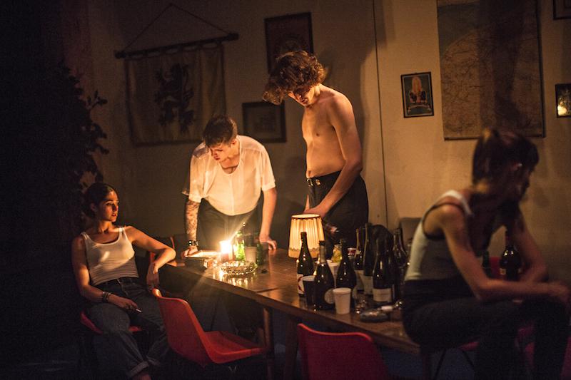 Passée la première partie du spectacle qui assaille le corps et le coeur de vibrations telluriques, tandis qu’au dessus du plateau, l’immense écran vidéo projette des images de la jungle de Calais, avec ses barbelés et ses Algecos, la froideur de ses paysages du Nord et ses autoroutes sillonnant la campagne, les acteurs passent à l’incarnation de leurs personnages, européens d’aujourd’hui réunis pour une fête « Erasmus » dans un appartement où trônent Jeanne D’Arc et Charles Martel, toutes nationalités européennes réunies pour dire qu’ils s’aiment, que plus jamais il n’y aura la guerre, dansant frénétiquement sur de la musique techno aux basses saturées. La caméra est là aussi, dans la pièce, pour les filmer en gros plan, de manière à détailler sur l’écran les visages et les attitudes. On se trémousse, on flirte, on drague, on allume à coups de gin et de vodka, on fume du tabac et on snife des rails de cocaïne, tout cela en direct, pour finir en partouze généralisée avec violence affichée dans les rapports. L’image d’Erasmus, dispositif de coopération européenne pour les jeunes qui va de la Turquie à l’Islande, se limiterait donc à cette dérive libertaire, où des jeunes sans cervelle profèrent des âneries et ne se préoccuperaient que de leur bien être addictif et sexuel ? D’autant que cet excès de liberté généralisée, dans ce monde d’après la Chute du Mur de Berlin, se solde par une dérive suicidaire. Le spectacle, pour le coup, semble rater sa cible, tant il simplifie, il surligne, il impose un propos radical, monolithique, sans laisser au spectateur le souffle d’une réflexion sur une thèse pour le moins nihiliste. L’Europe est en crise, certes. Mais l’Histoire n’est pas finie.