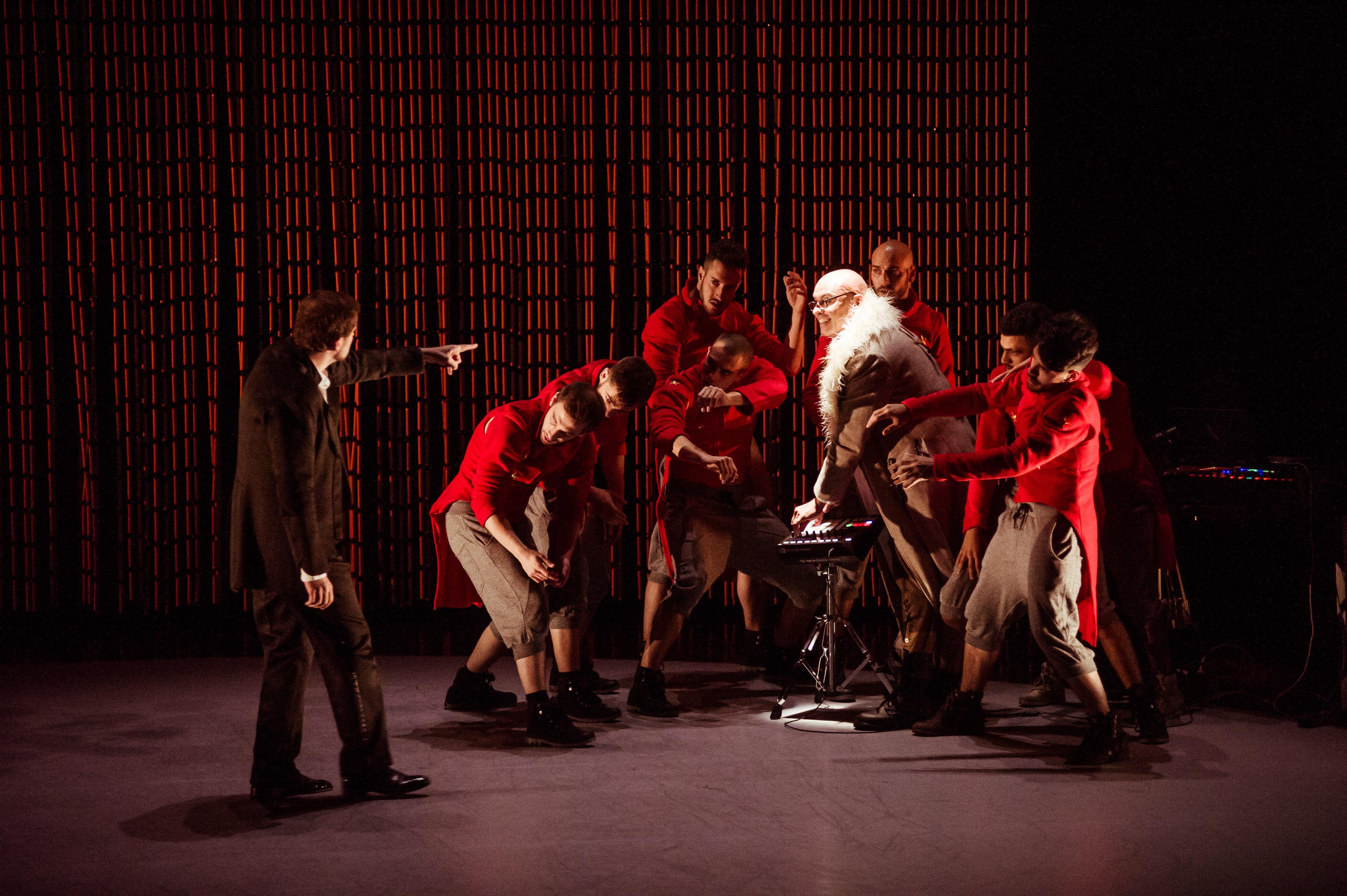 Anthony Egéa a choisi de réinterpréter Les Forains, ballet créé en 1945 par Roland Petit sur une musique d’Henri Sauguet tout en l’inscrivant dans l’esthétique – chorégraphique et musicale – de 2017. Le décor est planté avec la première scène, un impresario déjanté – manteau à col en fourrure et lunettes noires XL – qui joue avec des tables de mixage dans un décor de dancing avec grands lustres en cristal. Le spectacle prend la forme d’un tour de cirque où les artistes reprennent des rôles issus de l’univers circassien – l’hypnotiseur, le contorsionniste, les clowns – mais aussi du cabaret. Les décors et costumes sont émaillés de clins d’œil au cirque traditionnel comme avec les fracs rouges en tissus de vêtements de sports. La chorégraphie hip hop se nourrit de pas classiques – Anthony Egea a complété sa formation à l’école de danse de Cannes Rosella Hightower -. L’ensemble est drôle – avec la pointe d’émotion propre à l’univers du cirque et des arts de la rue, et mené tambour battant par des danseurs très investis.