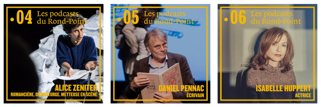 On a commencé les podcasts avec Gilles Cohen, car il jouait à la rentrée son spectacle Mon Dîner avec Winston. C’est un acteur de cinéma d’abord, mais aussi un grand comédien au théâtre. Ensuite on a eu Jacques Bonnaffé, explorateur des écritures et passionné par la transmission de la poésie. Il est par ailleurs membre du comité de lecture de Rond-Point. Parmi les plus récents: le romancier Daniel Pennac, dont le spectacle arrive au printemps prochain. Nous avons eu envie de faire un entretien avec lui parce qu’il n’est pas un auteur dramatique à proprement dit, et qu’il construit des ponts entre le roman et le théâtre de façon originale.