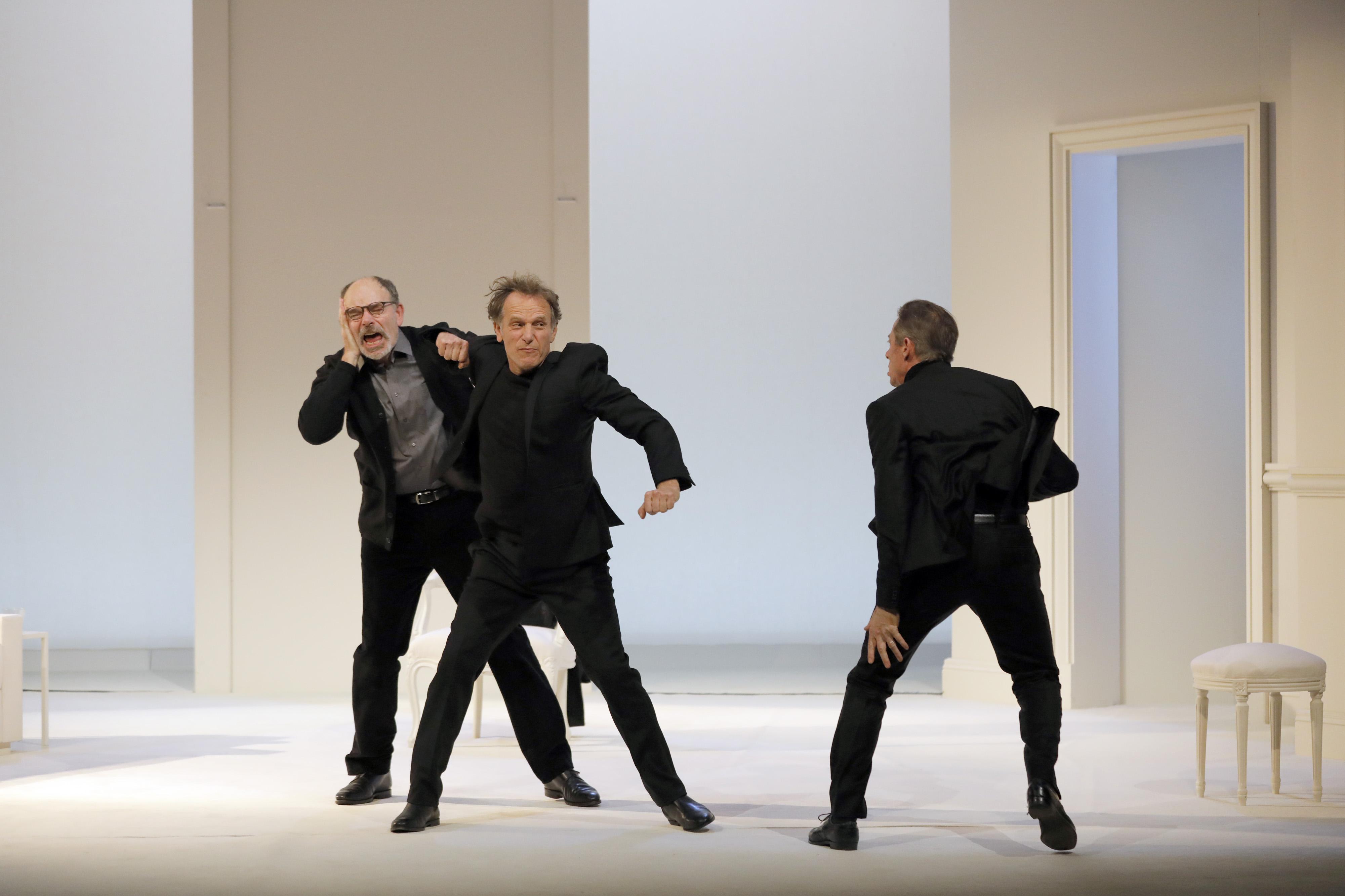 Yasmina Reza, qui est aujourd’hui étudiée dans les programmes scolaires, fait jaillir les répliques avec un brio qui n’appartient qu’à elle. Les dits et les non-dits se catapultent comme les auto-tamponneuses d’une fête foraine, les personnages se révélant en toute transparence, en toute innocence au public dans des monologues qui nous les rendent intimes. Naturellement, la colère de Marc, incarné par Charles Berling, possède la démesure d’un Alceste qui clame son dégoût au monde, alors que le Serge d’Alain Fromager ne cesse de prendre de la hauteur, quitte à en devenir odieux de suffisance et de snobisme. Pour autant, jamais les personnages ne sont caricaturaux tant les comédiens les nourrissent de leur humanité et de leur vérité.
