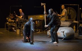 Gongs, batterie et autres accompagnent les deux chercheurs comme la pluie et le beau temps, inévitable partenaire et adversaire. Quand Nadj et Fatjo tirent une vieille baignoire, le bruit strident déchire le freejazz d’Akosh A. et Gildas Etevenard de l’intérieur.