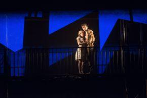 Mise en scène par Christine Letailleur qui a déjà dirigé Stanislas Nordey notamment dans une pièce de Toller, Baal est cadrée par une extraordinaire scénographie d’Emmanuel Clolus ainsi que par les magnifiques lumières de Stéphane Colin. Toute la pièce se joue dans une stylisation sidérante qui projette les corps, la ville ou la foule à travers des couleurs et des ombres chinoises crépusculaires. Les personnages qui se livrent aux beuveries ou à l’amour se transforment en figurines éclairées par le feu du monde. Stanislas Nordey tout au long de cette obscure marche scande sa recherche poétique en captivant le public. Son long corps souple de félin, son torse nu de Rimbaud à 17 ans, son verbe aux accents de Villon, grondent sur un plateau que l’on croirait parfois composé en partie par Caravage. La scène finale, ou plutôt le tableau final, est un moment subjugant. Le triomphe esthétique peut-il cependant racheter la noirceur des actes humains ? C’est une des nombreuses interrogations que les spectateurs trouveront dans les flammes de ce grand spectacle.