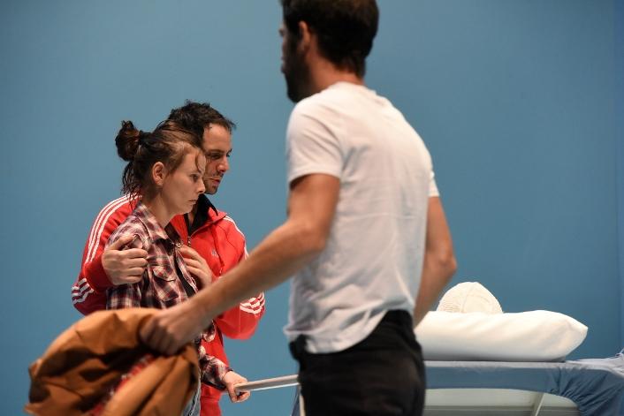 Lyn, Benjamin, Hafiz et Sam sont les frères et sœurs que l’on a suivis, d’abord autour de la figure de Condorcet, ensuite de Louise Michel et ici autour de Djamila Bouhired, icône algérienne de la révolution anti-coloniale. Développant une théâtralité qui déstructure l’espace et le temps, Baptiste Amann enchâsse les années cinquante à la société contemporaine et croise des lieux, tels une salle de procès à Alger, l’hôpital Henri Duffaud d’Avignon, des zones de logements sociaux, des rappels des quartiers dits sensibles allant de Vaulx-en-Velin au Mirail de Toulouse. La fratrie qui est le pivot de son action se retrouve, après la mort des parents, au chevet de l’un des leurs après une émeute. Dans l’hôpital où le médecin annonce la gravité de l’état de Benjamin, une aile des bâtiments est occupée par une équipe de tournage pour un film sur Djamila Bouired. Maniant les enchevêtrements tous azimuts, le metteur en scène va jusqu’à placer sur le plateau deux scènes en parallèle dans des endroits différents. Cette fusion des chronologies et des espaces qu’il a déjà brillamment réussie dans les premiers volets, prend à nouveau un tour riche en résonances et en pistes de réflexions.