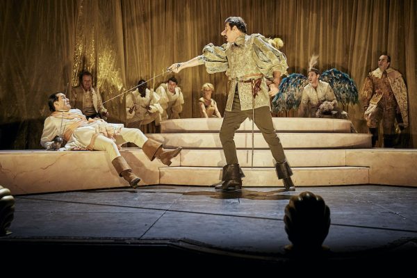 La pièce préférée des Français fait son grand retour à la Comédie-Française avec le comédien Laurent Lafitte dans le rôle titre et un décor kitch d’opérette. Jennifer Decker est une Roxane frémissante, seule femme d’une distribution totalement masculine dans la mise en scène queer d’Emmanuel Daumas qui teinte la pièce de burlesque. Pour autant, la pièce d’Edmond Rostand, par la puissance de ses vers, semble résister à cette actualisation.