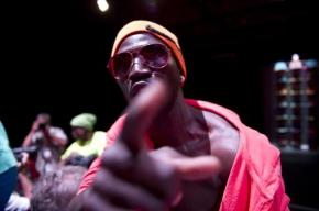 lph1869002Robyn Orlin a donné à sa première création sénégalaise un de ces titres-serpent dont elle a le secret: At the same time we were pointing a finger at you we realized that we were pointing three at ourselves… “ Libérés par l’esprit espiègle d’Orlin, s’adonnant à l’autodérision, les chanteurs-danseurs de la compagnie Jant-bi s’approprient donc la cérémonie Simb, dite « du faux lion ». Le titre évoque ce doigt braqué sur l’autre, cet index dégainé qui pointe la population d’un continent soi-disant figé dans ses rites. Mais ici ils en rient avec le public occidental, en allant au contact physique du spectateur.