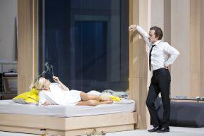 Démons met en scène deux couples qui vont s’entraîner l’un l’autre au désamour et à la déchirure. Frank (Romain Duris) et Katarina (Marina Foïs) vivent bourgeoisement dans un grand appartement, sans enfant, mais leur relation conjugale est autant énigmatique que chaotique. La violence verbale et physique, l’ironie, la moquerie et la méchanceté colorent leurs rapports et leurs dialogues sans qu’on sache exactement de quoi chacun des deux souffre réellement et la nature de leur sincérité. Désœuvrés, pervers, ils invitent leurs voisins, Thomas (Gaspard Ulliel) et Jenna (Anaïs Demoustier) à prendre un verre. Soucieux de surveiller leurs enfants en bas âge en laissant décroché leur téléphone alors qu’ils sont à l’étage supérieur, ils se laissent peu à peu ébranler par la déviance de Frank et de Katarina qui ne cessent de les provoquer et de mettre en pièces leur prétendue harmonie familiale. “Tu vois… j’ai finalement découvert qu’on pouvait baiser par amour et qu’on pouvait baiser sans amour… je veux dire, baiser avec toi sans amour, ce que j’ai fait ces dernières semaines… C’est une expérience terrifiante… comme d’arriver au crépuscule dans un endroit qui vient d’être ravagé par la guerre, et on compte les cadavres. C’est comme coucher avec un cadavre”, dit Frank à Katarina. Pour interpréter ces personnages monstrueux ou brisés, un quatuor d’acteurs en or se saisit du plateau. Romain Duris, beau gosse à moustache dans un costume cintré, est éblouissant de présence dans sa composition de macho pervers à la sexualité ambivalente. Sauvage et mutique, Marina Foïs trottine, égarée et moulée dans des robes hyper sexys, à la recherche d’un amour impossible que ni Gaspard Ulliel, dans une composition de jeune époux coincé et gauche, ni Anaïs Demoustier, touchante en mère de famille castratrice et angoissée, ne peuvent satisfaire. Chacun d’eux y va de sa vérité d’acteur en construisant dans cette scénographie hors du temps, mouvante, une boule d’affects en fusion. C’est assez magnifique. Hélène Kuttner [Photos © Giovanni Cittadini Cesi] |