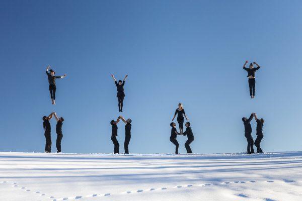 En une série de tableaux plus grands que l’humain (grand cinéma donc), voilà le groupe, le collectif, l’essaim et l’individu, présents pour partager avec nous leurs émotions, leurs rêves, leurs angoisses : douceur des roulades collectives, rebondissements par petits groupes, construction de pyramides humaines, chutes subites d’une personne seule, face au groupe… Des chaînes de corps se déploient comme en apesanteur et ce spectacle ne cesse de se retourner, sans jamais perdre le fil, la fluidité, le flow… Comme le fameux ruban de Möbius, justement : énigme et émerveillement permanents, comme le corps d’un.e acrobate sait se transformer en permanence, tout en restant le même. Ouramdane jongle avec le langage du cirque, langage fait de pyramides et d’envols. Il joue avec nos peurs et l’envie de se laisser emporter par une douce rêverie. Il porte les acrobates vers l’aérien, mais leur fait aussi découvrir le sol comme partenaire et agrès. Un vrai festin émotionnel et visuel.