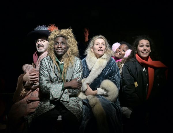 Cet oxymore extrait des Contemplations de Victor Hugo illustre bien, selon l’acteur et metteur en scène Yoann Gasiorowski, les turbulences contrastées des dix dernières années de la relation entre Molière et son compositeur ami, Jean-Baptiste Lully. Des Fâcheux au Mariage forcé, de Georges Dandin au Bourgeois Gentilhomme pour finir par Psyché en 1670, les deux Jean-Baptiste, Poquelin et Lully réunis par leur monarque protecteur Louis XIV, ne se quittent plus et ne cessent de mettre leur travail encore commun. Jusqu’à la brouille qui fit de Lully le seul détenteur du monopole qui lui permettait de jouer seul avec orchestre et dans tous les théâtres. La judicieuse idée du jeune auteur et metteur en scène a été de réunir sous la forme d’un cabaret joyeux six comédiens et quatre musiciens baroques, jouant en alternance de la basse de violon, du théorbe et de la guitare, pour raconter entre impromptu fantaisiste et récit pédagogique la relation entre les deux artistes. Un décor fait de bric et de broc, une armoire emplis de masques et de perruques frisées, un banc, une table, et une bande de comédiens d’âge divers, chevronnés comme Elsa Lepoivre, Serge Bagdassarian ou fraîchement arrivés comme Birane Ba, burlesque Roi Soleil, Elissa Alloula, formidable Lully, ou Claïna Clavaron qui joue la jeune Armande Béjart. Sous la direction musicale du spécialiste Vincent Leterme, ils sont tous joyeusement engagés dans cette promenade culturelle qui fait des sauts de swing dans notre époque, avec des digressions faussement improvisées du metteur en scène qui nous parle comme avec des amis. « Ne songeons qu’à nous réjouir, le grande affaire est le plaisir » écrit Molière sur un air de Lully. Ce spectacle en est le reflet heureux.