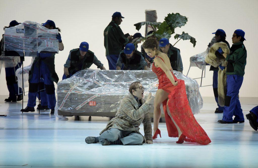 Laurence Brownlee campe un Ernesto vibrionnant, avec une belle voix mélodieuse qui manque encore de puissance, mais qui ne demande qu’à s’affirmer. Dans le rôle de Malatesta, le docteur Folamour, le jeune baryton Florian Sempey est étonnant de virtuosité et de précision, la technique « donizetienne » exigeant une dextérité de métronome, notamment dans les duos qui ne pardonnent rien. Drôle et inventif, il prouve qu’il peut être aussi à l’aise dans le répertoire italien que dans le français. Il faut dire que la scénographie ouverte Paolo Fantin, qui a dessiné une charpente de toit en suspension sur un plateau à jouer, sans parois de réverbération, n’est pas pour faciliter les choses. Cette exhibition constante de l’intimité, qui passe aussi par la vidéo incrustée permettant à Norina de prendre des poses de mannequin international, participe d’un show permanent facilité par le plateau tournant. Reste qu’Evelino Pido dirige cet opéra injustement négligé depuis 1843 de manière parfaite, extrayant la gaieté mousseuse et délicate de cette musique aux tempi surprenants et aux lignes mélodiques inventives. Un vrai bonheur.