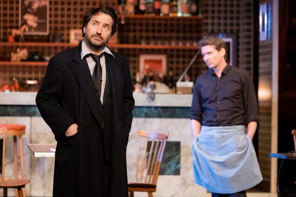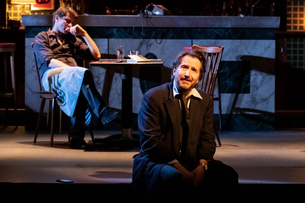 Lorsqu’il arrive sur scène vêtu d’un manteau noir et visiblement désemparé, Edouard Baer distille pendant quelques instants une ambiance de thriller comme si un dangereux ennemi était à ses trousses. Mais en réalité, nul ne le rattrape et son angoisse fondamentalement existentielle correspond à une panique comme chacun peut en connaitre un jour ou l’autre, panique qui consiste juste à vouloir violemment tout plaquer, partir, sortir de sa propre vie et l’oublier. Après la peur, ce personnage en pleine crise de confiance est très bien accueilli par un régisseur, ici interprété par Christophe Meynet qui intervient avec compréhension et doigté, tout en permettant à la situation de se rééquilibrer. Commence un partage littéraire avec le public, tel un vol léger, fluide, drôle parfois, émouvant et passionné, pudique et chaleureux à travers lequel sont posées des questions notamment sur le courage et la lâcheté.