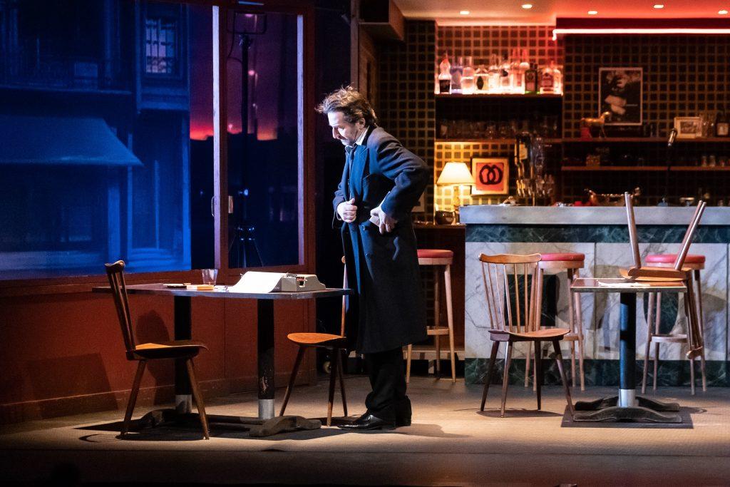 Maints extraits de romans, poèmes et tous genres littéraires se succèdent au fur et à mesure que le personnage s’installe. Edouard Baer les lance avec amour, il s’en délecte lui-même et les offre aux spectateurs avec générosité et jubilation. Casanova, Thomas Bernhard, Romain Gary, Georges Brassens, Bukowski, Boris Vian… La liste est longue de ces grands auteurs qui sont ainsi convoqués pour renouer avec l’espoir et Edouard Baer, qui feint astucieusement l’improvisation, semble être le premier surpris tandis que sa riche mémoire lui redonne des forces. Il entrecoupe ces perles littéraires de sa propre prose ainsi que de musique dont la magnifique Sarabande de Haendel, et des voix très touchantes d’artistes et amis. Son agent resté en rade cherche désespérément à le joindre par téléphone, mais en vain. Edouard Baer est bel et bien parti au gré des mots, et nous avec.