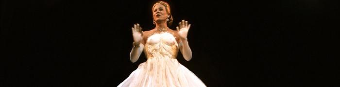 Quasi immobile durant tout le spectacle, Sebastian Galeota est vêtu d’une robe blanche tellement opulente qu’elle est presque un monument de mousselines et de voiles dont le bustier est rehaussé d’un collier de strass. La gestuelle de ses bras évolue dans une stylisation sensuelle, sa coiffure impeccable à la blondeur lisse et son visage sophistiqué ont l’élégance de celle qui voulait à tout prix bâtir sa réussite sans état d’âme quant à l’usage de ses atouts physiques. La voix est riche en intonations chaudes, les modulations sont variées, l’accent envoûte et le rythme est musical, nourri d’ailleurs de chansons. Le metteur en scène qui est l’auteur lui-même, Stéphan Druet, restitue l’univers troublant de cette véritable magicienne du pouvoir, qui parvint à atteindre une popularité de son vivant que beaucoup d’hommes politiques pourraient lui envier et qui est aujourd’hui présente sur les billets de banque en Argentine.