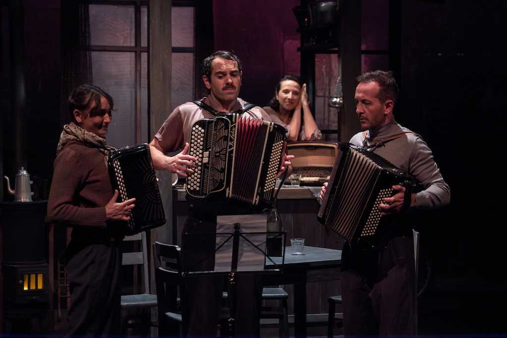 A la tête d’un orchestre local d’accordéon, il convainc les jeunes de participer à un concours régional de musique. Pierre, le fils de Simone et de Sosthène, un beau garçon, excellent musicien, réunit ses copains, dont son meilleur ami Vlad, le fils d’un mineur polonais, expert en accordéon. Quand survient la jolie Leila, la fille d’immigrés marocains, dont les doigts de fée dessinent sur l’accordéon de lumineuses harmonies, le duo de copains vient à se fissurer et les cœurs s’emballent. Jean-Philippe Daguerre a écrit un magnifique texte dont les dialogues, nourris de vérité historique et d’humour tendre, font mouche à chaque instant. Il faut dire que les comédiens qu’il dirige, Raphaëlle Cambray, sublime d’émotion, Jean-Jacques Vannier, impérial, Aladin Reibel, magistral, mais aussi Juliette Béhar, Julien Ratel et Théo Dusoulié, les trois jeunes, tous sont bouleversants. Un grand moment entre rires et larmes.