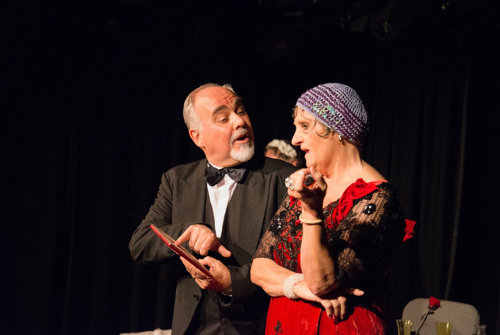 La pièce Amis ! Amis ? est une adaptation de la nouvelle Amicissimi de Luigi Pirandello qui questionne une fois de plus la part de théâtre qui existe dans chaque personne. Ici, une femme de la bourgeoisie se fait interpeller, dans la rue, par un individu qui s’adresse à elle comme s’il était son meilleur ami. Elle ne le reconnait pas mais sa bonne éducation l’oblige à l’inviter chez elle sans trop pouvoir le questionner. La mise en scène efficace permet de garder le mystère de la situation : Sommes-nous face à un escroc ou bien Donna Luigia qui vit seule, commence-t-elle à perdre la tête ? Mystère. Mettre en scène Pirandello, au début, est un clin d’œil à sa pièce majeure Six personnages en quête d’auteur.  Amis ! Amis ?  est un excellent moment de théâtre, impeccablement mené par Lucia Pozzi, Hervé Belmontet et Emmanuel Baillet.