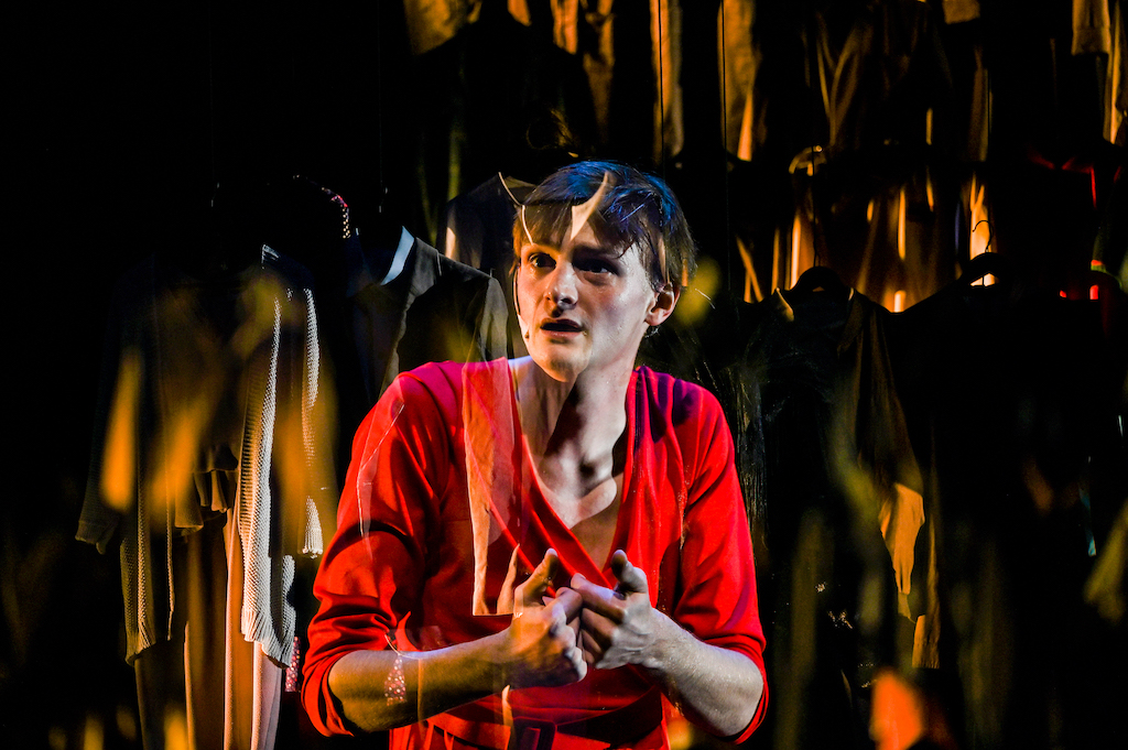 C’est l’un des spectacles les plus courus du Festival d’Avignon. Il est signé par Georges Lini, qui avait déjà enflammé le festival en 2023 avec son Iphigénie à Splott. Cette fois, nous ne sommes plus dans la banlieue de Cardiff où ferment les usines, mais au Sud de l’Italie, dans la région des Pouilles, dans le talon de la fameuse botte, où des familles entières portent sur leurs épaules le poids des traditions. Ici, une Antigone contemporaine, une jeune fille éprise de justice, qui ne supporte plus la domination masculine, les regards appuyés des mecs sur les filles trop libres, décide de passer à l’acte. Durant une fulgurante traversée, la belle Maria, dite sœur de Jésus-Christ -car son frangin a les cheveux longs- va traverser tout son village, entourée d’une foule mélangée, amis ou familles, chasseurs et bikers, garagistes et institutrice qui l’entourent ou lui barrent la route, armée d’un Smith&Wesson 9 mm en direction du garçon qui l’a abusée et qui se trouve dans sa boutique, à l’autre bout du village. Pour monter ce texte brûlant, magistral, écrit par l’Italien Oscar de Summa, le metteur en scène Georges Lini a eu la bonne idée de confier le rôle du narrateur à un très jeune et très brillant comédien, Félix Vannoorenberghe, qui interprète tous les personnages, dans sa robe rouge impérial et son casque de biker sur la tête. Le comédien est tout simplement époustouflant car il narre, joue, interprète et change de personnages au fil d’un incroyable et tragique western. Corps androgyne et visage d’ange, il est tour à tour Maria, Angelo le Couillon, sa meilleure amie, sa grand-mère, son institutrice…. A ses côtés, la musicienne Florence Sauveur, avec son violoncelle, son piano et son accordéon, crée une ambiance musicale d’une émotion poignante. Derrière eux, une rangée de vêtements colorés et suspendus à des cintres, qui s’accumulent comme la foule des personnages que Maria convoque. Une création magistrale.