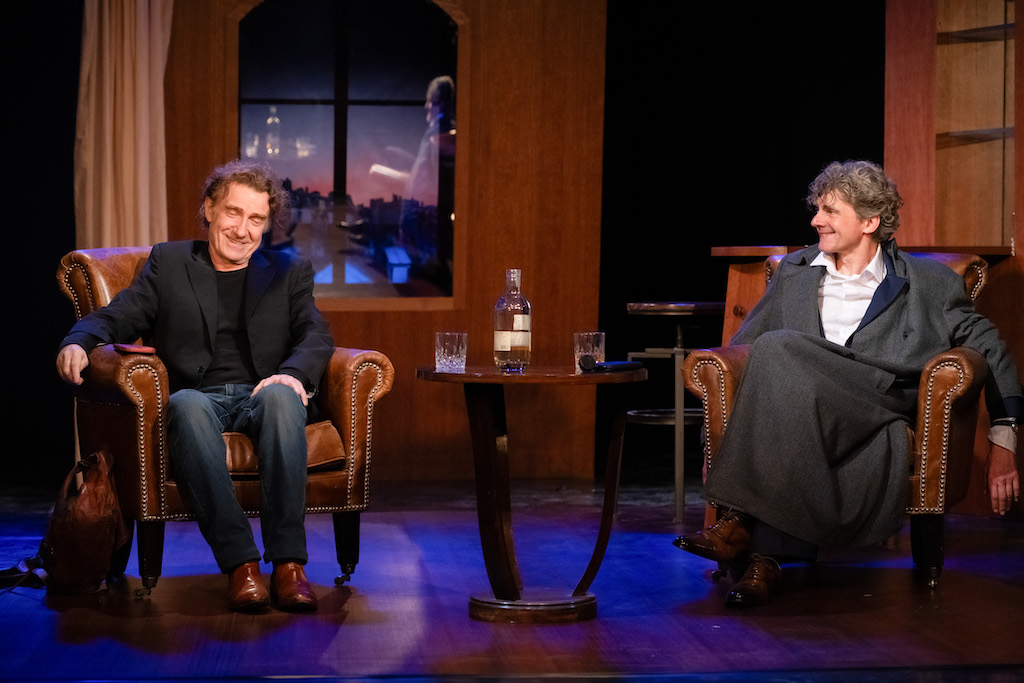 Deux hommes se retrouvent face à face dans des fauteuils en cuir vieilli d’un petit appartement parisien. Le premier, en jean et blouson décontracté, découvre le logement qu’il a réservé sur la plate-forme Airbnb, surpris de découvrir le second, costume élégant et long manteau taillé sur mesure, installé dans un fauteuil club. Qui est cet homme qui l’attend dans le noir ? Est-ce le propriétaire qui accueille son hôte ? Après des balbutiements, politesse puis piques ironiques d’usage, arrosés de quelques verres de très vieux whisky, les deux hommes s’expliquent, en se révélant tous deux amoureux de la femme qu’ils attendent. Le premier étant son amant, qui a décidé de la quitter ce soir, le second étant son mari, un avocat d’affaires qui accumule les profits, mais ne semble avoir de richesse que sa propre femme. Que vont se dire ces deux garçons, d’abord rivaux, puis complices et acteurs d’une même relation amoureuse ? La pièce de Sylvain Meyniac aborde avec beaucoup d’intelligence et de malice la question de la relation amoureuse, du couple, en disséquant surtout la part de fantasme, de rivalité et de vérité inhérentes toute relation. Pour servir ce dialogue exigeant, aux méandres surprenants, aux retournements de situation captivants, deux fauves, Thierry Frémont (l’amant) et Nicolas Vaude (le mari) déploient la perfection de leur talent d’acteurs, avec une finesse, une écoute et une sincérité remarquables. Delphine de Malherbe les met en scène avec une sobriété parfaite dans un décor de Catherine Bluwal. Le spectacle est épatant de bout en bout.