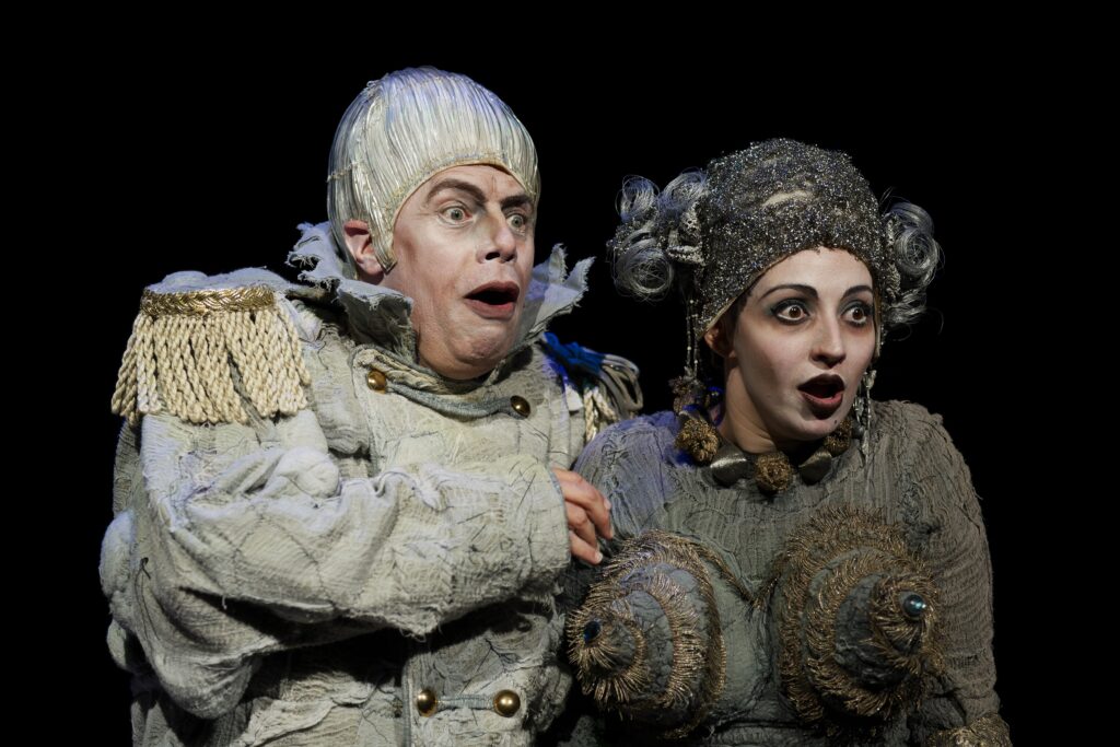 Quelle géniale idée que d’adapter la célèbre pièce d’Alfred Jarry, Ubu roi, à notre monde contemporain ! Mohammed Kacimi, excellent dramaturge, et Isabelle Starkier, metteuse en scène engagée, ont astucieusement tricoté cette pochade qu’un tout jeune auteur, Alfred Jarry, composa en 1896. A sa création, Ubu roi provoqua un gigantesque scandale, car on y voyait un méchant et grotesque clown, capable de tous les excès et de toutes les horreurs pour satisfaire ses instincts : gagner de l’argent et se remplir sa « gidouille », sa bedaine. Comme son cousin Macbeth, il est poussé par sa femme Mère Ubu, une mégère assoiffée de pouvoir, et commence à s’attaquer à la Pologne avant de tuer le Czar de Russie, maniant une machine à décerveler avec un « croc à merdre » ! Les rois devenant aujourd’hui des présidents, c’est en musique, sous la fabuleuse direction d’Alain Territo, que la joyeuse troupe transforme cette pochade politique, qui devient ni plus ni moins une formidable comédie musicale, avec un petit orchestre et des acteurs danseurs et musiciens devenus des personnages costumés au comble du grotesque. Ubu, c’est Stéphane Miquel, extraordinaire comédien capable de danser des claquettes tout en éructant des propos salaces, tandis que Mère Ubu est campée par la talentueuse Clara Starkier. Ils sont tous deux au chômage, dans des costumes hallucinants et des maquillages incroyables, ils s’étripent vulgairement mais le rire démoniaque d’Ubu dévasterait la terre entière avec ses « rien à foutre ». Tiens, voici qu’une journaliste de Niouze, en quête de faits divers, vient les interviewer et décide des les aider à réaliser le rêve de leur vie : devenir président et femme de président. Dès lors, et on ne dévoilera pas les modèles présidentiels qui ne cessent de jaillir dans ce spectacle, une démoniaque stratégie se met en place en forme de programme de campagne : « vive le cassoulet », « à bas le couscous », « la retraite à 100 ans » et on met en place le Ministère des vacances ! Ubu le démagogue n’a peur de rien et il boxe quand il faut se battre. Michelle Brûlé, Stéphane Barrière, Stéphane Miquel et Virgile Vaugelade complètent cette musicale distribution qui nous propulse dans une effrayant dystopie, où le rire côtoie l’effroi, comme pour les dictatures qui sont prennent souvent le masque de la dérision. Un spectacle ébouriffant et indispensable.