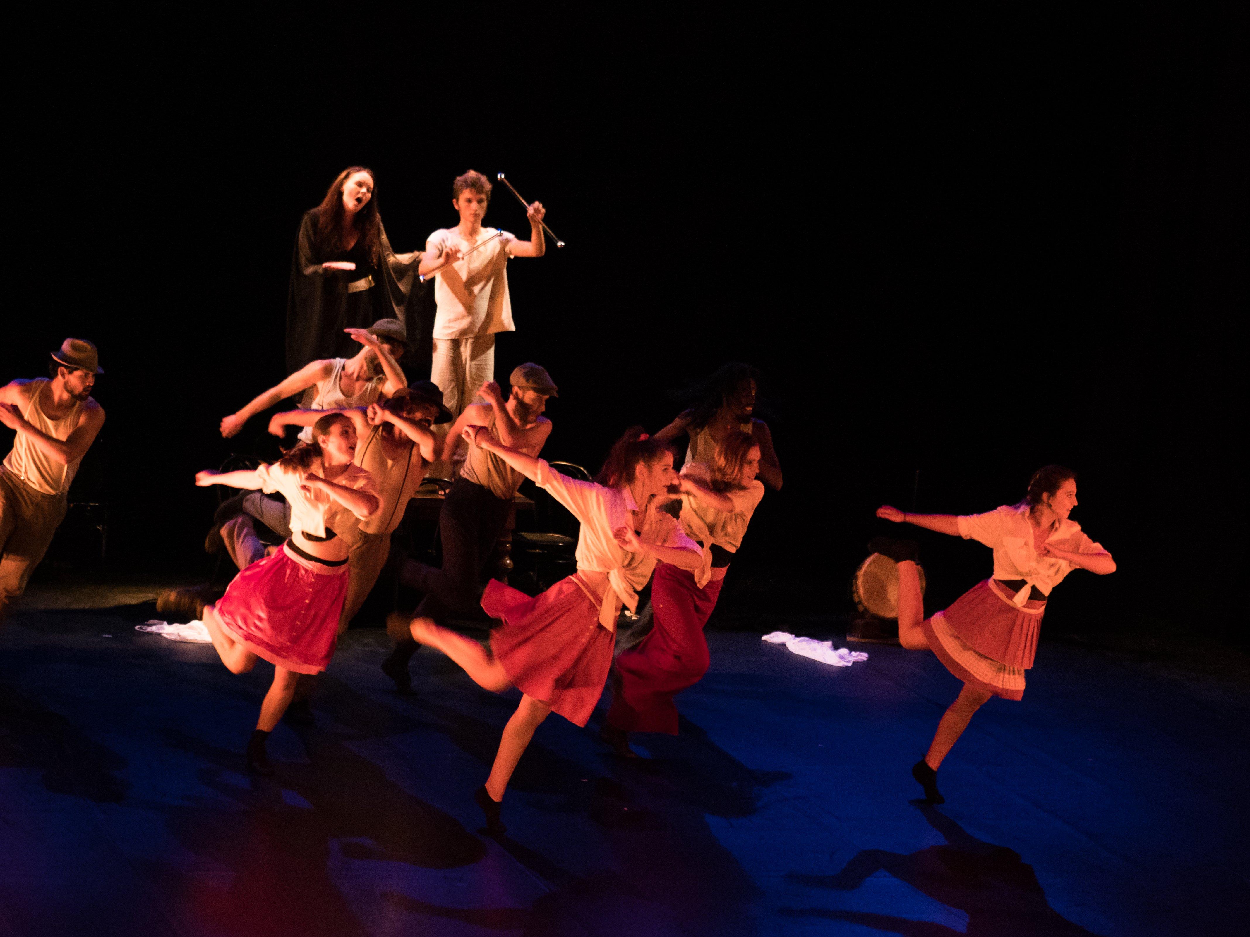 Habituée du Off avignonnais, la compagnie suisse Interface revient cette année avec le quatrième épisode de sa pentalogie Les Âges de la vie. Vive la vie nous invite à suivre les évolutions de la société rurale suisse au XXe siècle au travers d’une saga familiale : arrivée de l’électricité dans la ferme, travail occasionnel sur les chantiers de barrage puis salariat à l’usine. Les femmes quittent leur tablier pour la mini-jupe, c’est l’avènement de la société de consommation où, dit l’un des personnages, “il y a toujours plus de trucs à acheter”. Troupe survoltée, musique aux envolées lyriques, chorégraphie puissante – l’inspiration ne se trouverait-elle pas parfois du côté de la technique gaga d’Ohad Naharin ? –, la pièce est un véritable ouragan. Vive la vie n’est pas un manifeste politique mais offre une source de réflexion sur les notions d’indépendance économique, de liberté dans les sociétés traditionnelles et industrielles et de progrès.