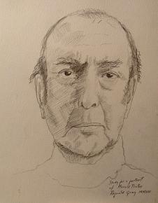 [Visuel : Dessin de Reginald Gray. Graphite. Published in Pinter’s obituary in the New Statesman, 12 January 2009. Domaine public]