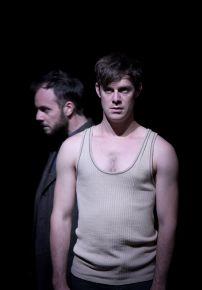 20170906-12VPLes comédiens, par la sobriété de leur jeu et par leurs physiques, corps, regard, voix, laissent sentir dans l’interstice de leurs mouvements les fondements de leur être qui sont aussi les fondements de l’œuvre de Genet : la beauté masculine, la fascination pour le crime, la dissection de la pulsion, l’érotisme des malfrats… Le cérémonial de cette mise en scène rencontre la sacralisation qu’on peut déceler dans le texte. Le mystère du crime qui confine à « une sainteté manquée » disait Jouhandeau, s’énonce à paroles feutrées tandis que la présence sensuelle des quatre comédiens se fait éruptive. Dans ce lieu où règne l’obscurité, il n’est guère que la peau pour apporter la clarté. Et le soin qu’apporte le metteur en scène à cette donnée trouve une large portée grâce à une distribution très réussie. La silhouette longue de Sébastien Pouderoux campe Yeux-verts avec puissance, Jeremy Lopez a le regard d’un enfant naïf pris au jeu risqué des grands, et enfin, Christophe Montenez, dont les bras dénudés jettent une foudroyante lueur de sensualité, incarne Maurice avec un diabolique angélisme.