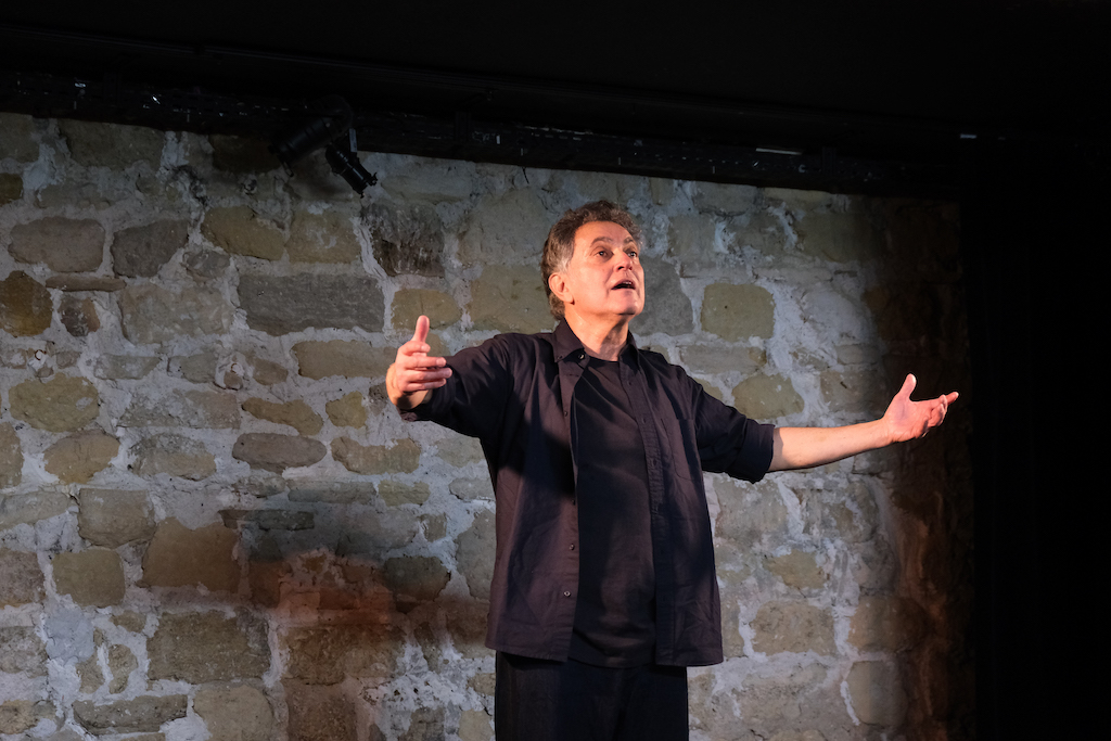 Il surgit sur le plateau, et c’est une évidence que ce garçon-là, avec son regard de braise, avec ses mains qui battent l’air, va nous faire voyager dans un autre monde, une autre époque ; que le héros de cette histoire, débarrassé de tout orgueil et de tout amour propre, sera le héros de sa propre vie. Patrick Massiah, avec une délicatesse infinie dans le choix des mots, nous raconte une histoire qui est peut-être la nôtre, la vôtre, puisque la sincérité du geste artistique produit de l’universel. Dans cette auto-fiction nourrie d’Albert Cohen et de Romain Gary, un fils, au moment de l’enterrement de sa mère, s’accorde l’autorisation d’exister par lui-même. A Montpellier avec ses grands-parents, avant de rejoindre ses parents à Nice, alors que toute la famille vient de s’exiler du Maroc, le jeune garçon conjugue ses jeux d’enfants avec l’amour des filles, et celui des mots. De ces mondes rêvés puis quittés, le Maroc, Montpellier, Nice, puis Paris, de ses béances affectives, de ses chutes sentimentales et physiques, le comédien trop tôt exilé fera une matière de jeu, une farandole d’émotions qui le submergent et qu’il nous livre avec la précision maniaque d’un orfèvre, la patience inassouvie d’un amoureux assoiffé d’histoires.