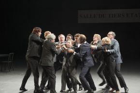 Depuis « Pôles », sa première création écrite en 1995 puis publiée plus tard, Joël Pommerat ne cesse de parler du monde dans lequel nous vivons en s’attachant à des existences tissées de souffrance et de passions. Son théâtre se construit avec un collectif d’acteurs complices, au fil de mois d’improvisation et de réécriture des dialogues finaux. Cette matière vivante travaillée de mots et d’affects, se trouve ensuite magnifiée par un travail de lumières et de son tout à fait particulière, cinématographique. Depuis deux ans maintenant, Joël Pommerat, assisté du jeune historien de la Révolution Guillaume Mazeau, de son scénographe Eric Soyer et de son créateur sonore François Leymarie, travaille sur la matière sociale de la Révolution Française. Partant de discours, d’archives parlementaires, de procès verbaux, des journaux de l’époque et de centaines de lettres échangées, il recrée aujourd’hui, avec une trentaine de comédiens et de figurants, l’atmosphère brûlante des débats révolutionnaires en faisant de la salle et des spectateurs l’assemblée de citoyens ou de députés. Ne cherchez pas Danton, ni Robespierre, ni Marrat. Aucun personnage historique n’est présent dans le spectacle sous son nom. Seul Louis XVI, haute stature de jeune homme aux allures de Giscard, joué par Yvain Julliard, demeure identifié comme Louis, roi de France. C’est que les discours, polémiques, débats et invectives sont adaptés dans notre langage d’aujourd’hui par des comédiens magnifiques qui se sont approprié ces sujets, habillés de manière contemporaine et saisis par ce tournant de l’histoire auxquels ils participent. Cela commence par la crise financière de 1787 à Versailles, débattue entre le roi et ses ministres, pour finir en 1791, juste avant la fuite de Louis XVI. Entre les deux, nous voyageons à travers une éblouissante successions de scènes jouées par des comédiens qui endossent chacun plusieurs rôles dans un tempo accéléré ou ralenti, selon la situation. Il y a une énergie, une tension dramatique, une précision dans la peinture des personnages et les situations assez sidérantes, qui donnent à la représentation, qui dure 4 heures, l’aspect d’une performance. On s’étripe pour savoir comment former des comités de citoyens, on se bat pour faire entendre les voix des députés du Tiers Etat quand ceux du Clergé et de la Noblesse décident se murer dans une morgue dédaigneuse, ou pour faire taire les plus excités et laisser émerger les modérés qui légitiment la royauté. Comment un ordre établi depuis des siècles peut-il être bouleversé par des mouvement populaires ? Députés, commerçants, citoyens, soldats, mais aussi la Reine, l’Archevêque de Narbonne et les ministres, tous vont s’exprimer avec la folle violence de la rage ou avec la retenue policée des nantis, et les mots, les thèmes abordés résonnent étrangement avec nos sociétés actuelles. Pommerat s’amuse d’ailleurs à jouer avec la télévision par des reportages princiers retraduits en espagnol, sonorisation outrancière et rampes de spots éblouissants. On aimerait parfois d’ailleurs que le son soit moins saturé et on regrette un peu la langue véritable et les mots des orateurs du 18° siècle, artisans parfois inconscients de cet événement qui a bouleversé le monde en amenant la démocratie. L’essentiel, pourtant, est bien présent ici et on voit des femmes, beaucoup, et des hommes se battre pour défendre leurs droits naturels. Le personnage de Louis, curieusement, demeure une énigme… peut-être révélée dans le second épisode, à venir, de cette saga. Hélène Kuttner [Photos : © Elizabeth Carecchio] |