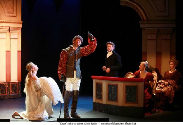 Kean raconte l’histoire de ce fameux acteur anglais qui triomphe au Théâtre Royal de Drury Lane, acclamé par le tout Londres du début du XIXe siècle. Comprenons l’histoire. Kean (Alexis Desseaux) est aimé par deux femmes. L’une est la comtesse Elena (Eve Herszfeld) mariée à l’ambassadeur du Danemark, l’autre est Anna Damby (Justine Thibaudat), jeune et bourgeoise et argentée prête à tout pour rester auprès de ce comédien coureur de jupons, perturbé tant par l’alcool que par ses dettes. Au passage, Alain Sachs nous confiait il y a peu que la façon dont Sartre avait traité de ces deux femmes laissait entrevoir à son avis la patte de Simone de Beauvoir.