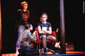 Pour répondre et porter l’écriture provocante et courageuse de l’auteur, Barbara Schultz, d’une beauté ravageuse et d’une énergie dévorante, est tout simplement grandiose. En mini-jupe panthère ou en simple jean, elle égrène le viol, la violence, la brutalité subies par les femmes, elle crie leur revendication comme un droit à l’existence bafoué en permanence, encore aujourd’hui. Anne Azoulay, longue plante brune au corps élastique, illumine aussi l’espace de sa personnalité animale et clownesque, dans des lumières violacées ou rouges et des vidéos suggestives.